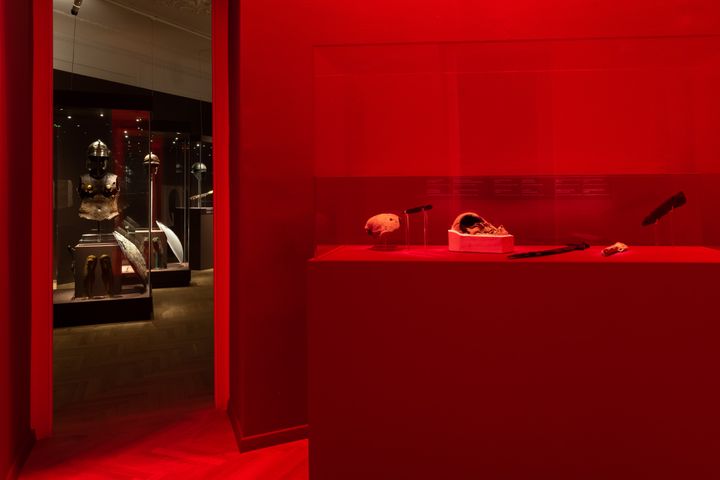Εκτός από τους δύο κόσμους που συγκρούστηκαν, η έκθεση παρουσιάζει τις ταφικές πρακτικές των δύο στρατευμάτων, στο Πολυάνδριο των 254 Θηβαίων Ιερολοχιτών με το μνημείο του Λέοντα της Χαιρώνειας και στον Τύμβο των Μακεδόνων. Ιδιαίτερη έμφαση δίνεται στην αρχαιολογική ανάκτηση της μάχης, προβάλλοντας το έργο δύο πρωτοπόρων της ελληνικής αρχαιολογίας στα τέλη του 19ου και στις αρχές του 20ου αιώνα, του Παναγιώτη Σταματάκη και του Γεωργίου Σωτηριάδη.