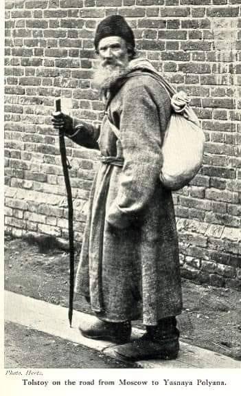 Αυτή η φωτογραφία μπροστά σας δεν είναι ενός φτωχού άστεγου ζητιάνου, αλλά του γίγαντα της ρωσικής λογοτεχνίας Λέων Τολστόι ” Ο Τολστόι, που ηταν ευγενής, κατείχε τεράστια γη και μεγάλο πλούτο. Θυσίασε όλη του την περιουσία για τους φτωχούς, τους άπορους, τους άστεγους και έζησε τη ζωή των φτωχών. “