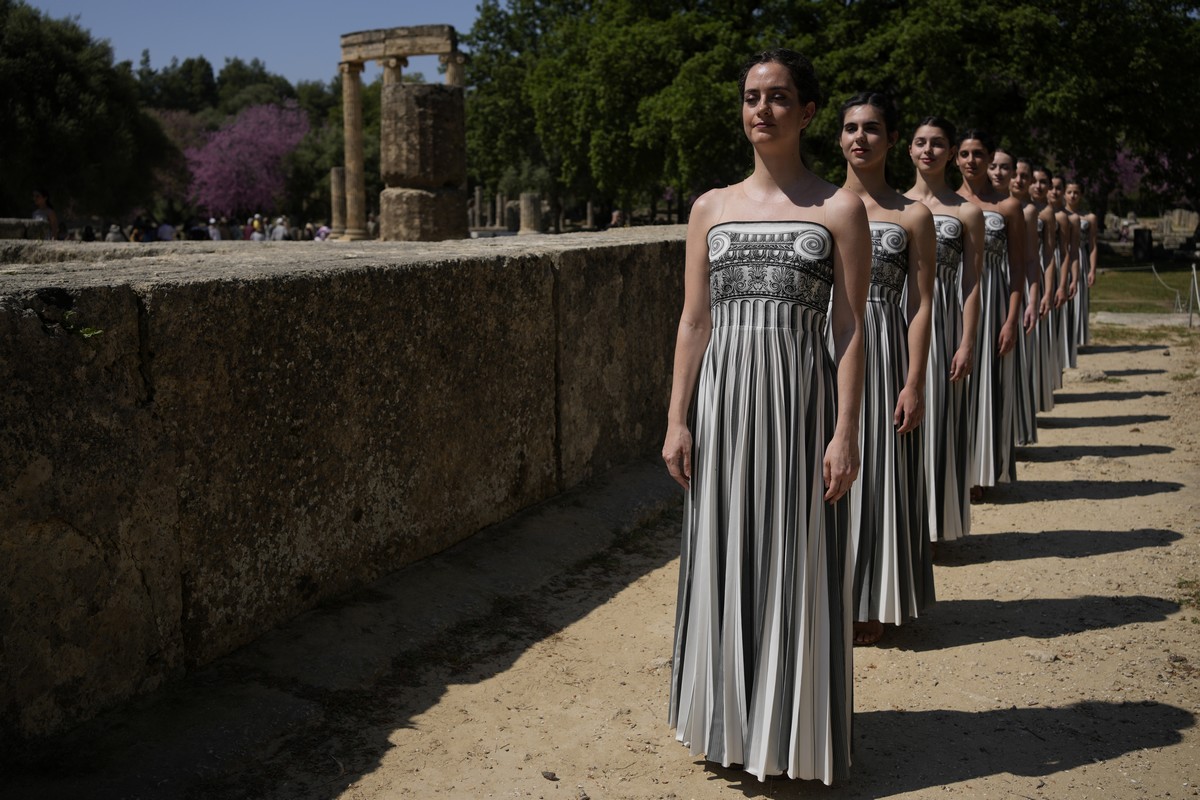 Παρ’ όλα αυτά, κοιτώντας τις φωτογραφίες από την τελετή αφής της Ολυμπιακής φλόγας, οι ενδυμασίες βγάζουν απόλυτα νόημα.