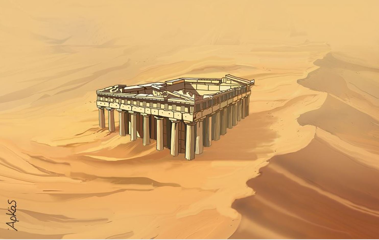 Με τη σημερινή σκονισμένη «Καλημέρα» του ο σκιτσογράφος Αρκάς απεικονίζει την Αθήνα κυριολεκτικά πνιγμένη στην αφρικανική σκόνη.