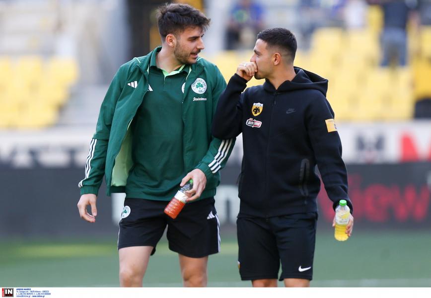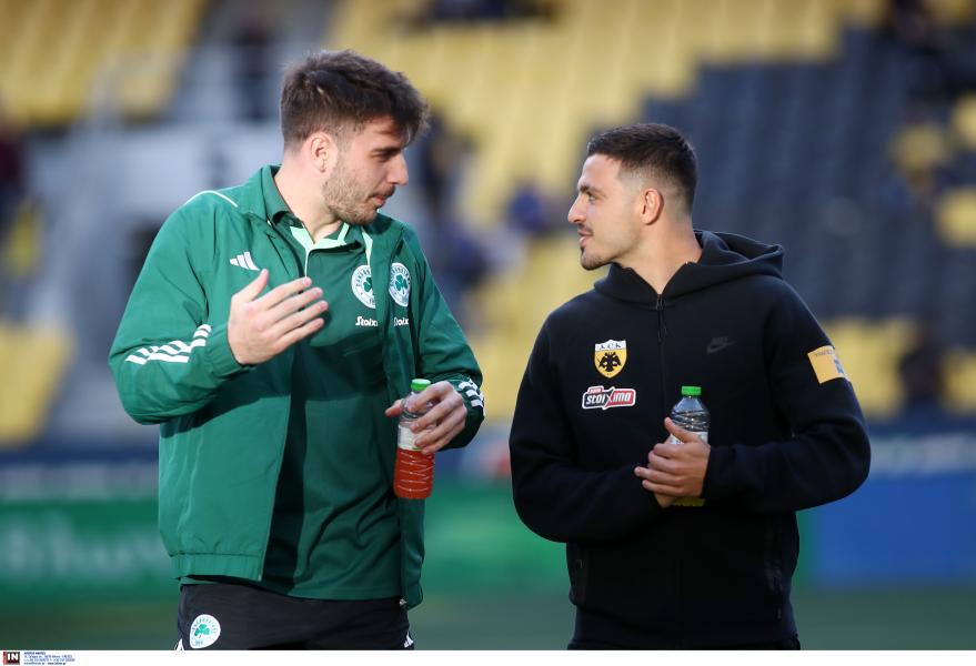 Το μέχρι στιγμιότυπο του ντέρμπι ανήκει στον άσο του Παναθηναϊκού, Φώτη Ιωαννίδη και στον μέσο της ΑΕΚ, Κώστα Γαλανόπουλο.