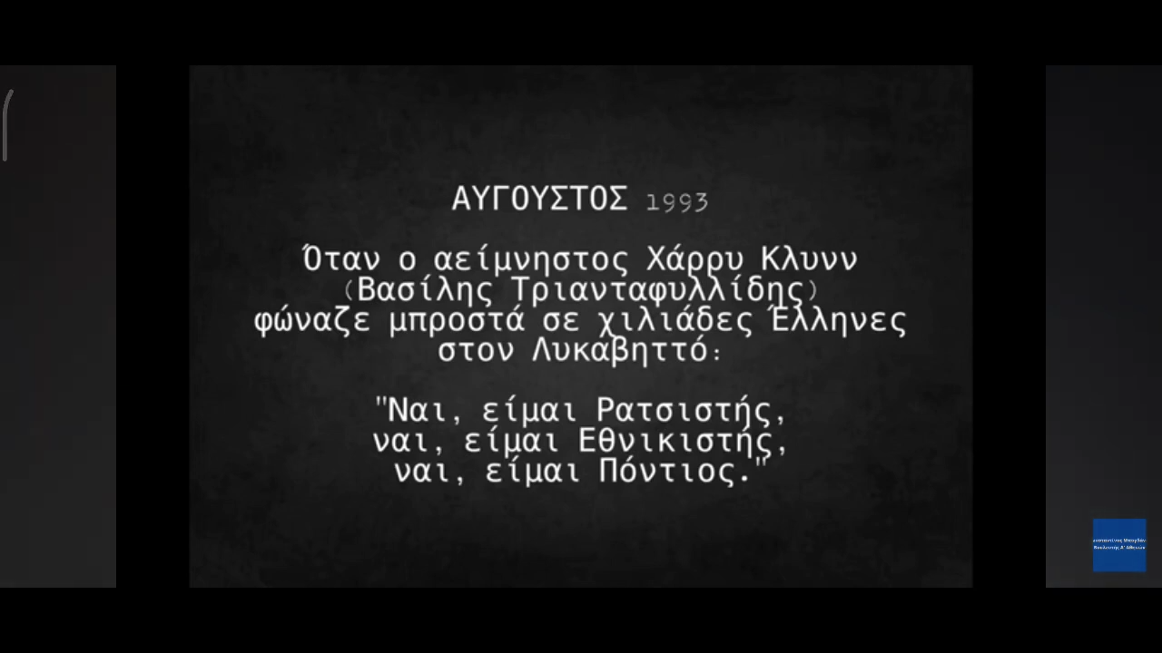 Ο Χάρυ Κλύν καλιτεχνική αδεία και απ’ τα βάθη της ψυχής του, βεβαίως και είχε το δικαίωμα να βροντοφωνάζει να διαλαλεί, την αγάπη του για το ελλην. Έθνος και τον προδομένο Ποντιακό ελληνισμό.