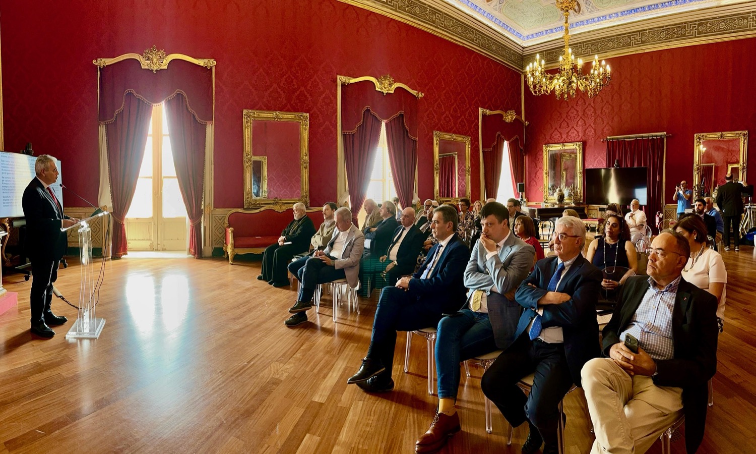 Την παρουσίαση, που συντόνιζε ο σύνδεσμος της ΔΣΟ με Καθολικούς Φορείς κ. Virgilio Avato, χαιρέτισαν ο Μητροπολίτης Ιταλίας του Οικουμενικού Πατριαρχείου κ. Πολύκαρπος και η εκπρόσωπος της Ελληνικής Κοινότητας Σικελίας «Τρινακρία» κ. Δέσποινα Καρνιαδάκη. Για τον Τόμο μίλησαν, επίσης, η Πρόεδρος του Ινστιτούτου των Βυζαντινών Μεταβυζαντινών Σπουδών της Σικελίας καθηγήτρια κα Renata Lavagnini και ο συγγραφέας και δημοσιογράφος κ. Alberto Samona. Νωρίτερα, ο σύμβουλος της ΔΣΟ κ. Κώστας Μυγδάλης αναφέρθηκε στην καμπάνια της Οργάνωσης για την Αγία Σοφία.
