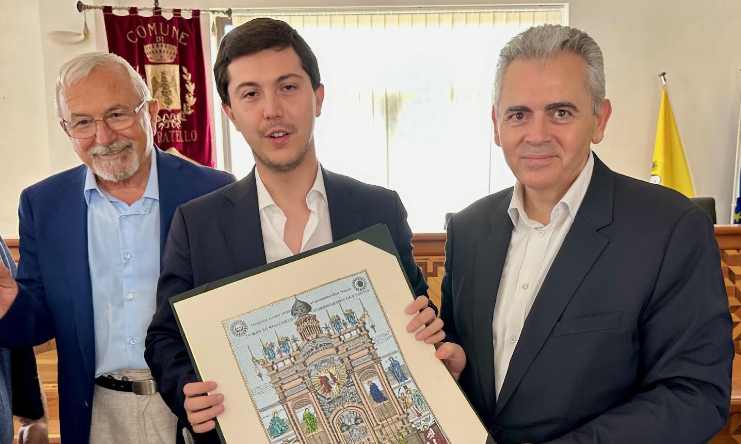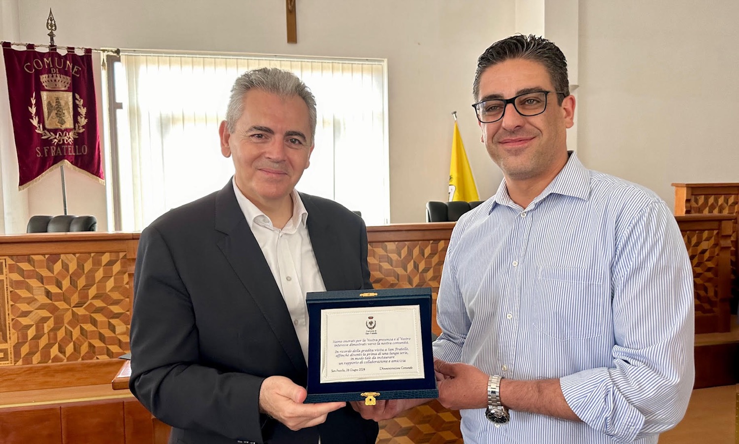 Στο πλαίσιο της επίσκεψης στη Σικελία, η αντιπροσωπεία της ΔΣΟ, επισκέφθηκε τη βυζαντινή μονή των Τριών Αγίων του San Fratello, που βρίσκεται στην κορυφή του Monte Vecchio, και είναι αφιερωμένη στους Τρεις Αγίους Μάρτυρες αδελφούς Alfio, Filadelfio και Cirino. Στη μονή που αποτελεί μια από τις σημαντικότερες μαρτυρίες της παρουσίας ελληνόφωνων μοναχών στην Σικελία, τους Ορθόδοξους βουλευτές υποδέχθηκαν νέα παιδιά, που προσφέρουν ως εθελοντές στον δήμο, τα οποία τους ενημέρωσαν για την ιστορία της πάλαι πότε διαλαμψάσης βυζαντινής μονής. Ακολούθως, η αντιπροσωπεία της ΔΣΟ υπό τον Γ.Γ. δρ Μάξιμο Χαρακόπουλο έτυχε θερμής υποδοχής στο δημαρχείο του San Fratello από τον δήμαρχο κ. Giuseppe Princiotta, τον βουλευτή, αντιπρόεδρο της επιτροπής υγείας, κ. Calogero Leanza και την σύμβουλο του Δήμου κ. Cardali Fortunata.