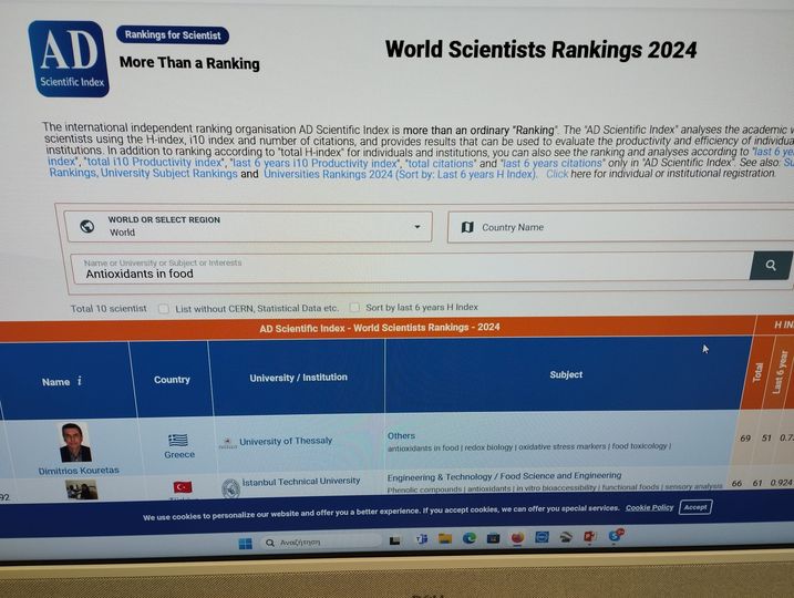 Dimitris Kouretas: Πριν 2 χρόνια το εργαστήριο μου ήταν 11 στον κόσμο στον τομέα των αντιοξειδωτικών στα τρόφιμα , που είναι το πεδίο έρευνας μας. Πέρυσι 7οι , και φέτος 1ο στον κόσμο . Τι να πω στα παιδιά του εργαστηρίου μου;