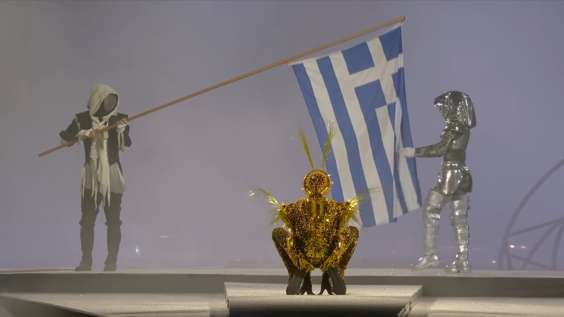 Τα φώτα έσβησαν. Ο εθνικός ύμνος της Ελλάδας ακούστηκε, από χορωδία με «νότες» από μεσαίωνα, και ανυψώθηκε η ελληνική σημαία, με το όλο σκηνικό να μοιάζει με δυστοπία. Σε μία…