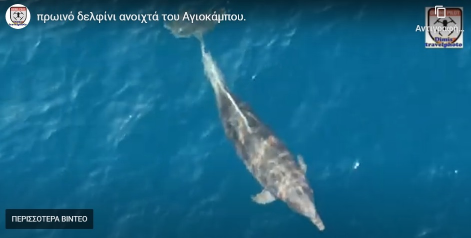 Η κάμερα από ψηλά «έπιασε» πανέμορφο δελφίνι να κολυμπάει και να «χορεύει» παίζοντας με την θάλασσα στα ανοιχτά του Αγιοκάμπου σήμερα το πρωί της Πέμπτης.
