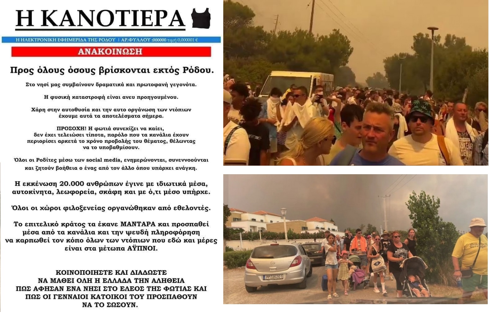 Στη Ρόδο και στα εύκολα και στα δύσκολα απέδειξαν την ανθρωπιά τους. Παλιά αυτός ο άγγνωστος που φιλοξενούνταν σ΄ένα σπιτικό λέγονταν “γιαρένης”. Τώρα κανένας δεν έμεινε αβοήθητος. 50.000 “γιαρένηδες” ξένοι και ντόπιοι φιλοξενούνται αυτόβουλα σε σπίτια μέχρι να τελειώσει το κακό και να γυρίσουν στα μέρη τους. Πρωτόγνωρα πράγματα. Παραπονιούνται για το μικρό τους σπίτι που δεν τους επιτρέπει να φιλοξενήσουν περισσότερους. Αυτό, είναι Ελλάδα. Αυτό που έλαμψε δια της απουσίας του είναι “το επιτελικό κράτος”. Πάλι καλά που άνοιξαν στρατόπεδα για να φιλοξενήσουν κόσμο.
