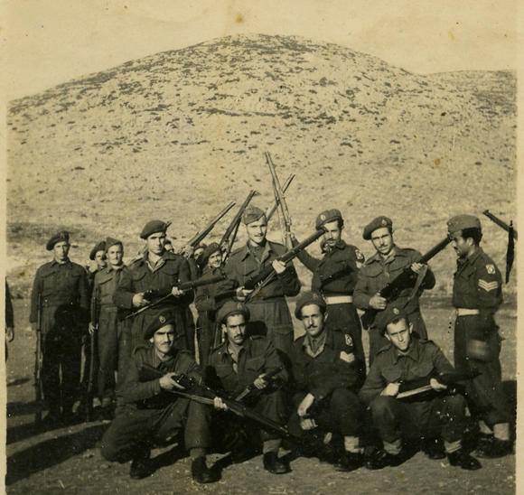 Ο λοχίας Κων. Κοντογιαννίδης (δεξιά) με την διμοιρία του όταν βρήκε την μάνα την Φλωράκη