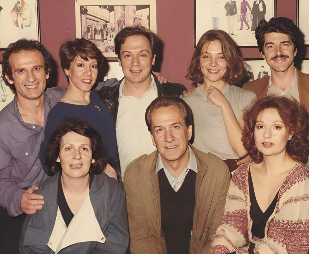 Συνάντηση κορυφής: Ο Αλέκος Αλεξανδράκης στα μέσα της δεκαετίας του 80 με τα μέλη μιας καλλιτεχνικής συντροφιάς που ανανέωσε το ελληνικό θέατρο και έγραψε ιστορία: Άννα Παναγιωτοπούλου, Μίρκα Παπακωνσταντίνου, Μίμης Χρυσομάλλης, Όλια Λαζαρίδου Σταμάτης Φασουλής, Τάσος Πεζιρκιανίδης και η Μίνα Αδαμάκη. Ο Αλέκος Αλεξανδράκης είχε κάνει την μοναδική του εμφάνιση σε επιθεώρηση μαζί τους στο «Ψεκάστε, ψηφίστε, τελειώσατε» το καλοκαίρι του 1984.