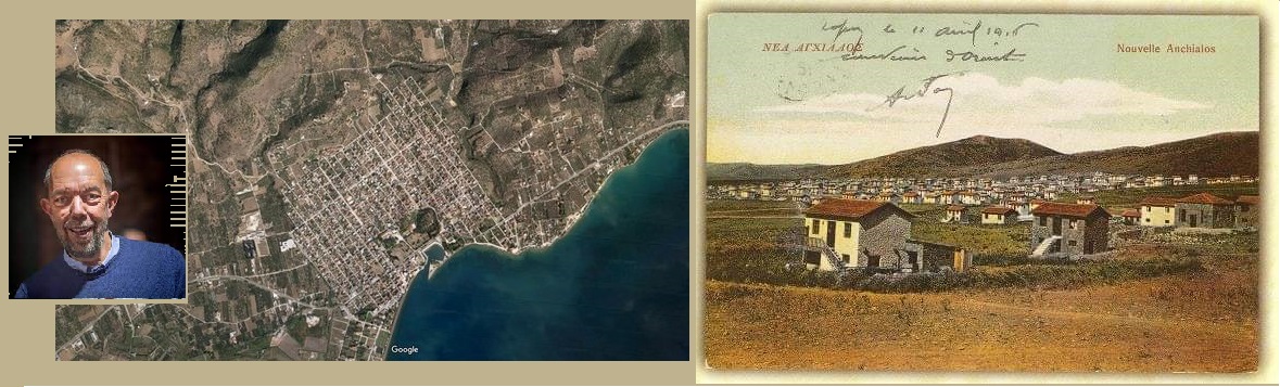 Στις εικόνες η Νέα Αγχίαλος με το “καθαρό” οργανωμένο σχέδιο πόλης και τους επίσης καθαρούς από άγρια βλάστηση λόφους της όπως φαίνεται από τον δορυφόρο και μία εικόνα λίγο μετά την οικοδόμηση του οικισμού, το 1915.
