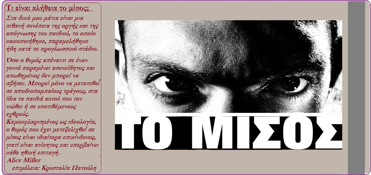 Τι είναι αλήθεια το μίσος; Στα δικά μου μάτια είναι μια πιθανή συνέπεια της οργής και της απόγνωσης του παιδιού, το οποίο παραμελήθηκε ήδη κατά το προγλωσσικό στάδιο.