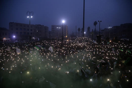 Βγαίνοντας στους δρόμους αυθόρμητα σε διάφορες συνοικίες, συγκεντρώθηκαν για να εκφράσουν τη δυσφορία και την ανησυχία τους, δυο εβδομάδες και πλέον αφού πήρε την εξουσία συμμαχία ένοπλων οργανώσεων ανατρέποντας τον πρόεδρο Μπασάρ αλ Άσαντ.