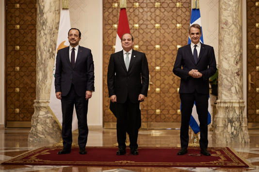 Ο Κυριάκος Μητσοτάκης, ο Νίκος Χριστοδουλίδης και ο Άμπντελ Φατάχ Αλ Σίσι στις δηλώσεις τους μετά τη 10η συνεδρίαση της τριμερούς στο Κάιρο, επιβεβαίωσαν τη συμμαχία των τριών χωρών και πήγαν ένα βήμα παραπέρα.