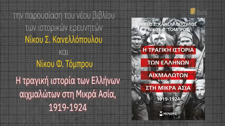 Τα βιβλιοπωλεία Public και οι εκδόσεις Μίνωας διοργάνωσαν την Τρίτη 17 Δεκεμβρίου, 2024 στο Public Συντάγματος (Καραγεώργη Σερβίας 1 – Αθήνα) την παρουσίαση την παρουσίαση του νέου βιβλίου των ιστορικών ερευνητών Νίκου Σ. Κανελλόπουλου και Νίκου Φ. Τόμπρου, «Η τραγική ιστορία των Ελλήνων αιχμαλώτων στη Μικρά Ασία, 1919-1924». Ομιλητές: 🔸 Άγγελος Μ. Συρίγος, Καθηγητής Διεθνούς Δικαίου και Εξωτ. Πολιτικής, Πάντειο Πανεπιστήμιο, Βουλευτής ΝΔ, Α’ Αθηνών 🔸 Σπύρος Πλουμίδης, Καθηγητής Νεότερης και Σύγχρονης Ελληνικής Ιστορίας, Εθνικό και Καποδιστριακό Πανεπιστήμιο Αθηνών 🔸 Χαρίκλεια Δημακοπούλου, Διδάκτορας Νομικής, Γενική Γραμματέας Ιστορικής και Εθνολογικής Εταιρείας της Ελλάδος 🔸 Νίκος Σ. Κανελλόπουλος, επίκουρος καθηγητής Στρατιωτικής Ιστορίας στη Στρατιωτική Σχολή Ευελπίδων 🔸 Νίκος Φ. Τόμπρος, αναπληρωτής καθηγητής Πολιτικής Ιστορίας στη Στρατιωτική Σχολή Ευελπίδων και διευθυντής στο Ιστορικό Αρχείο της Εκκλησίας της Ελλάδος Συντονιστής: 🔸 Χρίστος Βασιλόπουλος, Δημοσιογράφος – Διευθυντής και Παρουσιαστής της ερευνητικής εκπομπής «Μηχανή του Χρόνου»