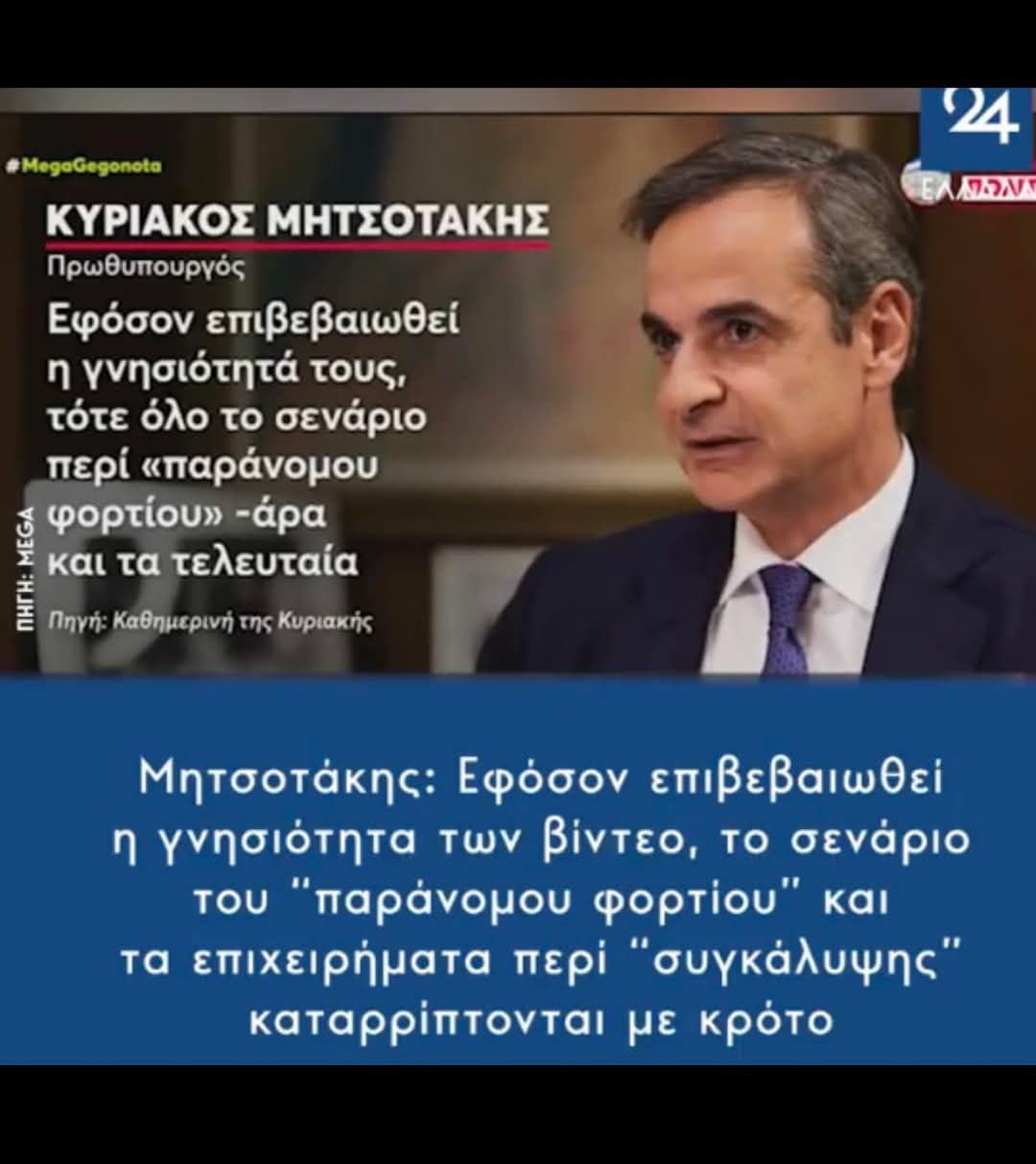 Η απάντηση είναι ΝΑΙ όταν με χάρισμα Προφήτη, αλλά και με ύφος 40 καρδιναλίων, για άλλη μια φορά σήμερα λέει:«Εφόσον, όμως, επιβεβαιωθεί η γνησιότητά των βίντεο, τότε όλο το σενάριο περί «παράνομου φορτίου» -άρα και τα τελευταία επιχειρήματα περί «συγκάλυψης»- καταρρίπτεται με κρότο.»Έχει εκλείψει τόσο πολύ το φιλότιμο και το ήθος, που ο κ. Μητσοτάκης ούτε καν περιμένει τα αποτελέσματα για τα video που βρέθηκαν στον κάδο σκουπιδιών ενός αγνώστου pc. Ναι στον ΚΑΔΟ ΣΚΟΥΠΙΔΙΩΝ !, εκεί που πραγματικά ανήκουν. Μα γιατί να τα περιμένει; Αφού τα έχει προβλέψει! Και αυτά και την κατάρριψη της συγκάλυψης με κρότο! Εδώ με χάρισμα ενόρασης ο ταλαντούχος Πρωθυπουργός μας προείδε τα ίδια τα μελλοντικά video, στη συνέντευξη του στον κ. Σροιτερ! Στα αποτελέσματα για τη γνησιότητα τους τώρα θα κολλήσουμε;