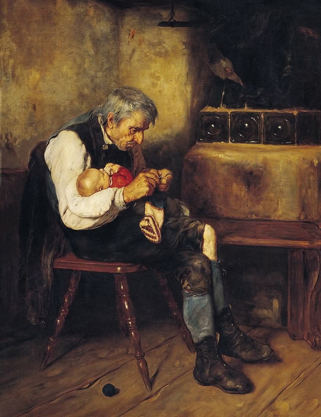 Παππούς και εγγονός, 1882. Λάδι σε μουσαμά του Νικόλαου Γύζη