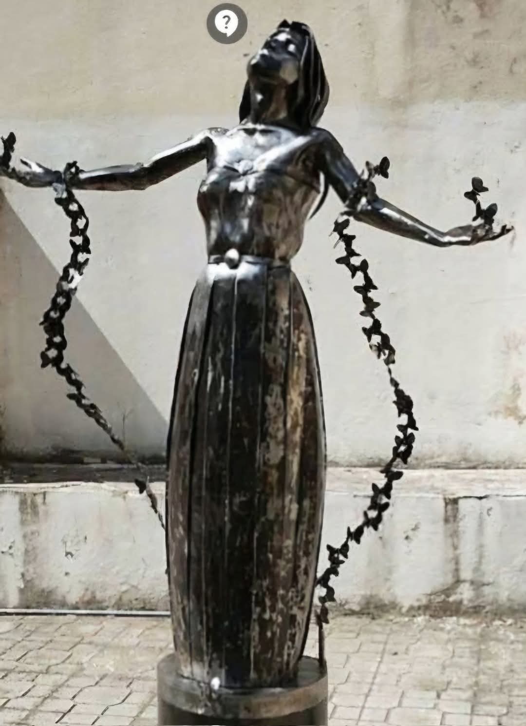Το γλυπτό του Αρη Ασσαριωτάκη αφιερωμένο στη μνήμη των 57 θυμάτων στα Τέμπη.