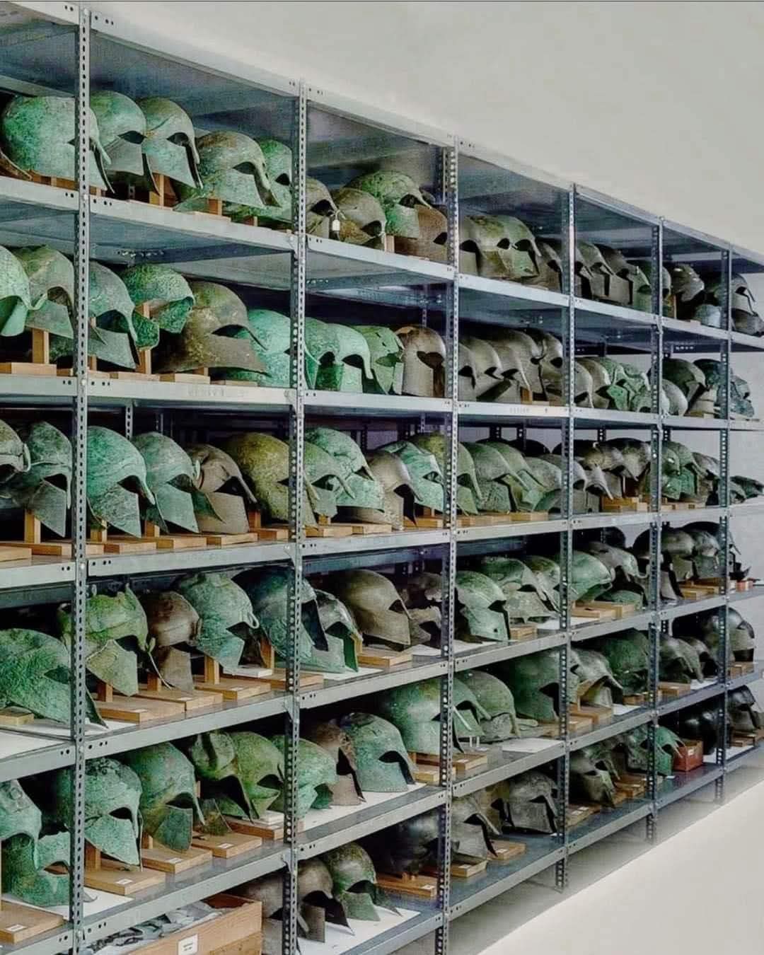 Κράνη ἡρώων, κράνη ποὺ δοξάστηκαν σὲ μάχες, ἀδιάψευστοι μάρτυρες τῆς ἱστορικῆς συνέχειας τοῦ ἑλληνισμοῦ, βρίσκονται σὲ μία ἀποθήκη !!! Εἶναι σὰν νὰ κλείνουν οἱ Κινέζοι ὅλους τοὺς πήλινους στρατιῶτες τους σὲ μία ἀποθήκη καὶ νὰ ἐκθέτουν σὲ μουσεῖο τους μόνο δύο τρεῖς.