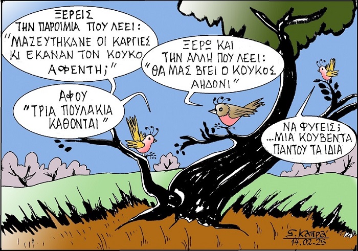 ...ξανά στα θρανία, στη μεγάλη των γελοιογράφων σχολήΤο περίμενα Πέτρος Ιωάννου1 έτος ago1 έτος ago01 mins 16/2/2025 Σκίτσο του Γιώργου Καπράνου 14/2/2025 Σκίτσο του Γιώργου Καπράνου Πηγή: arcadiaportal.gr Πλοήγηση άρθρων Previous: Κουδουνάτοι μαμουζέλες μούσκαροιNext: Ποιός πληρώνει; Αφήστε μια απάντηση Ακύρωση απάντησηςΗ ηλ. διεύθυνση σας δεν δημοσιεύεται. Τα υποχρεωτικά πεδία σημειώνονται με *Σχόλιο * Όνομα * Email * Ιστότοπος Αποθήκευσε το όνομά μου, email, και τον ιστότοπο μου σε αυτόν τον πλοηγό για την επόμενη φορά που θα σχολιάσω.