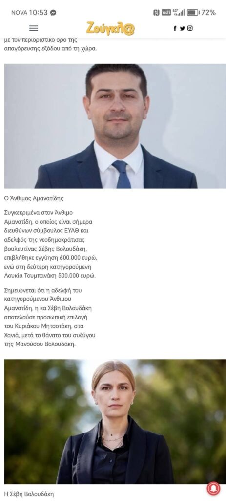 Αλλά οι δημοσιογράφοι και οι Ψαριανοί ωρύωνται πως η Καρυστιανού και η Φύσσα έχουν πολιτικές φιλοδοξίες.Ήλθε και ο κυβερνητικός εκπρόσωπος (Μαρινάκης)να μας συνετίσει ,λέγοντας πως στις Δημοκρατίες και τα πολιτισμένα κράτη δεν υπάρχει οικογενειακή ευθύνη…με αφορμή τη σχέση της νέας υπουργοποίησης – πλέον – Αμανατίδου Βολουδάκη με τον αδελφό της Άνθιμο Αμανατίδη ,κατηγορούμενο για τη σύμβαση 717 των Τεμπών που είναι ελεύθερος με χρηματική εγγύηση.Παρακάτω το ποινικό μέρος του αδελφού(ένα χρόνο πριν),της υπουργού, χήρας του βουλευτη της Νέας Δημοκρατίας.”
