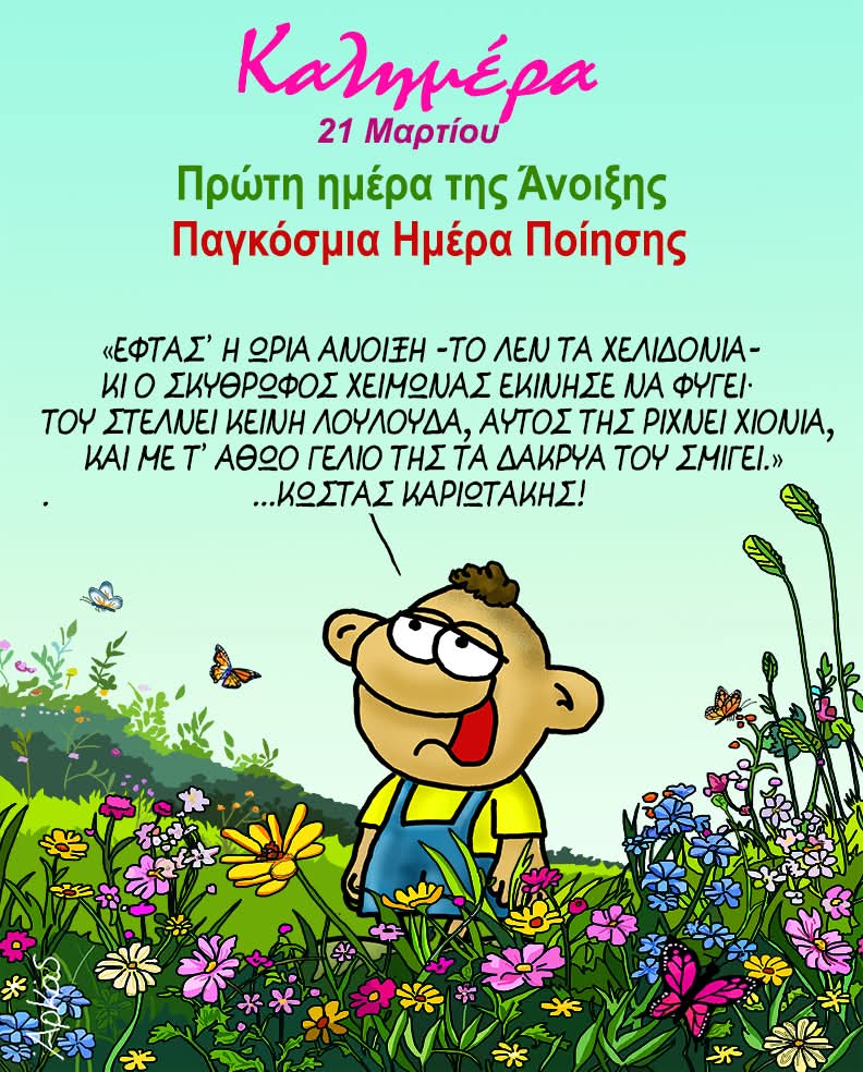 ...ξανά στα θρανία, στη μεγάλη των γελοιογράφων σχολήΗ καλημέρα του Αρκά Πέτρος Ιωάννου1 έτος ago1 έτος ago01 mins 21/3/2025 Πλοήγηση άρθρων Previous: Ελλάδα – Τουρκία: Ξαφνικά νέες ισορροπίεςNext: Σκίτσο της Έφης Ξένου για τα ΝΕΑ Αφήστε μια απάντηση Ακύρωση απάντησηςΗ ηλ. διεύθυνση σας δεν δημοσιεύεται. Τα υποχρεωτικά πεδία σημειώνονται με *Σχόλιο * Όνομα * Email * Ιστότοπος Αποθήκευσε το όνομά μου, email, και τον ιστότοπο μου σε αυτόν τον πλοηγό για την επόμενη φορά που θα σχολιάσω.
