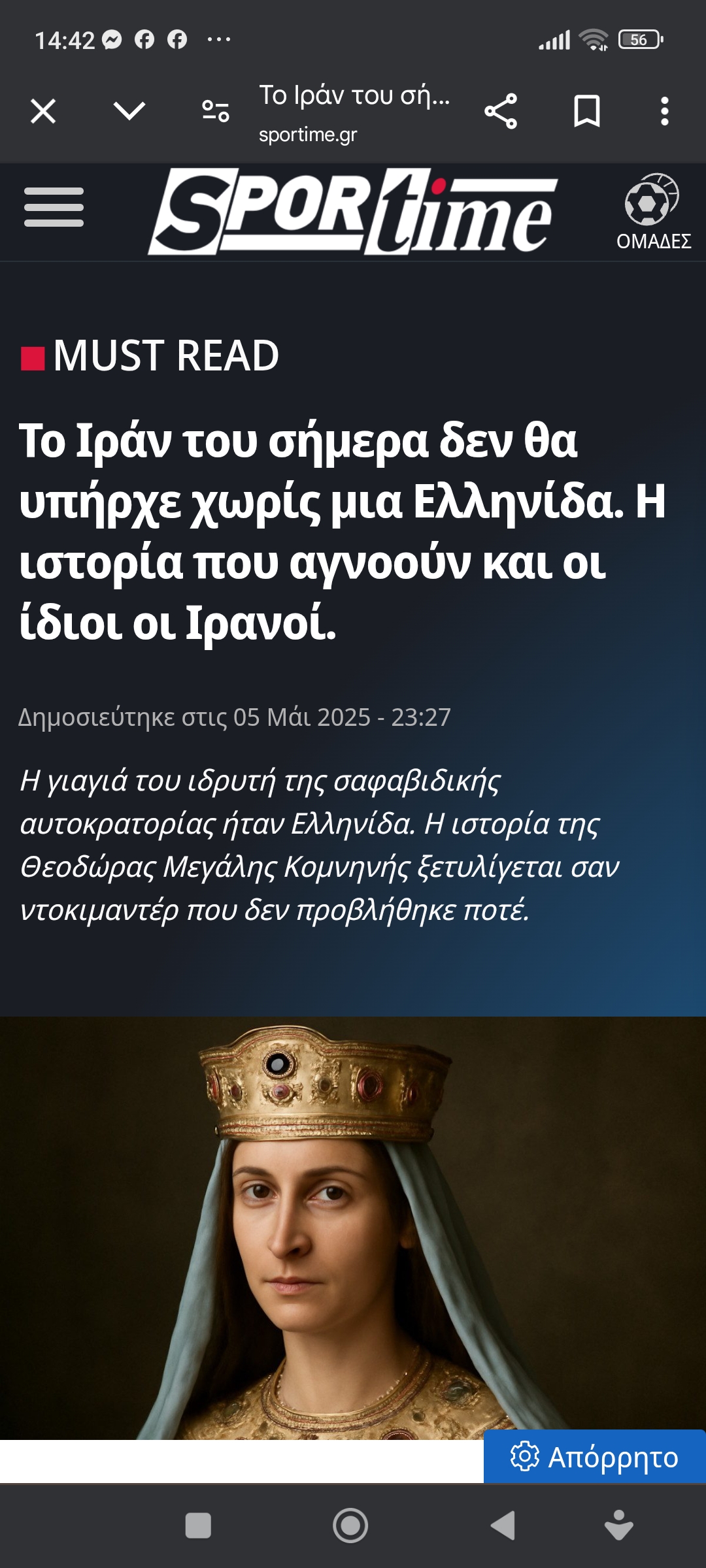 ΙστορίαΤο Ιράν του σήμερα δεν θα υπήρχε χωρίς μια Ελληνίδα. Ιστορία που αγνοούν και οι ίδιοι οι Ιρανοί Πέτρος Ιωάννου11 μήνες ago11 μήνες ago01 mins 5/5/2025 https://www.sportime.gr/must-read/to-iran-tou-simera-den-tha-ipirche-choris-mia-ellinida-i-istoria-pou-agnooun-ke-i-idii-i-irani Πλοήγηση άρθρων Previous: Η καλημέρα του ΑρκάNext: Σκίτσο της Έφης Ξένου για τα ΝΕΑ Αφήστε μια απάντηση Ακύρωση απάντησηςΗ ηλ. διεύθυνση σας δεν δημοσιεύεται. Τα υποχρεωτικά πεδία σημειώνονται με *Σχόλιο * Όνομα * Email * Ιστότοπος Αποθήκευσε το όνομά μου, email, και τον ιστότοπο μου σε αυτόν τον πλοηγό για την επόμενη φορά που θα σχολιάσω.