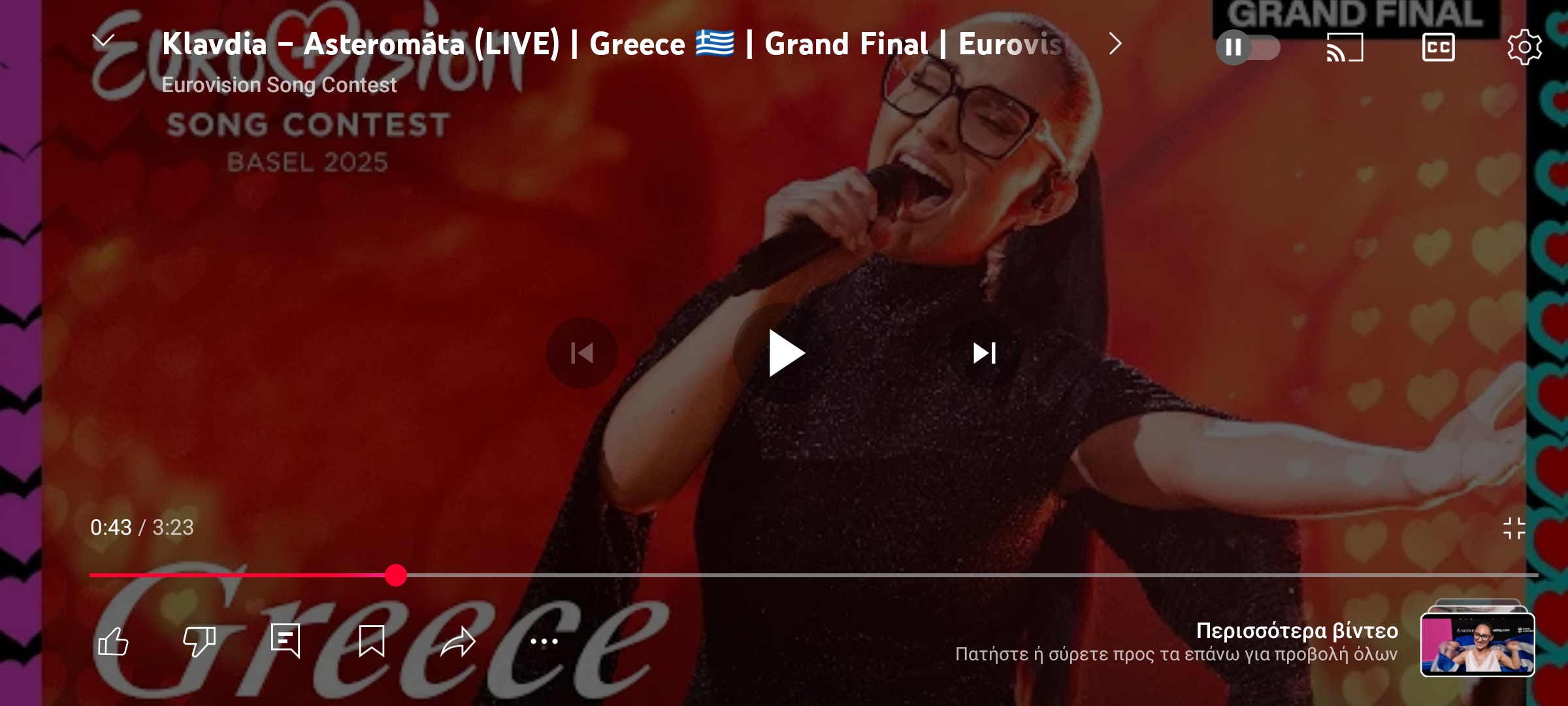 Εκπαίδευση / ΠολιτισμόςΚλαυδία – Αστερομάτα | Eurovision 2025 Πέτρος Ιωάννου11 μήνες ago11 μήνες ago01 mins 17/5/2025 Κλαυδία – Αστερομάτα | Eurovision 2025 Πηγή: Eurovision Song Contest Πλοήγηση άρθρων Previous: Ένα ακόμη Έγκλημα χωρίς τιμωρίαNext: Νικηφόρος Μανδηλαράς, εις μνήμην Αφήστε μια απάντηση Ακύρωση απάντησηςΗ ηλ. διεύθυνση σας δεν δημοσιεύεται. Τα υποχρεωτικά πεδία σημειώνονται με *Σχόλιο * Όνομα * Email * Ιστότοπος Αποθήκευσε το όνομά μου, email, και τον ιστότοπο μου σε αυτόν τον πλοηγό για την επόμενη φορά που θα σχολιάσω.