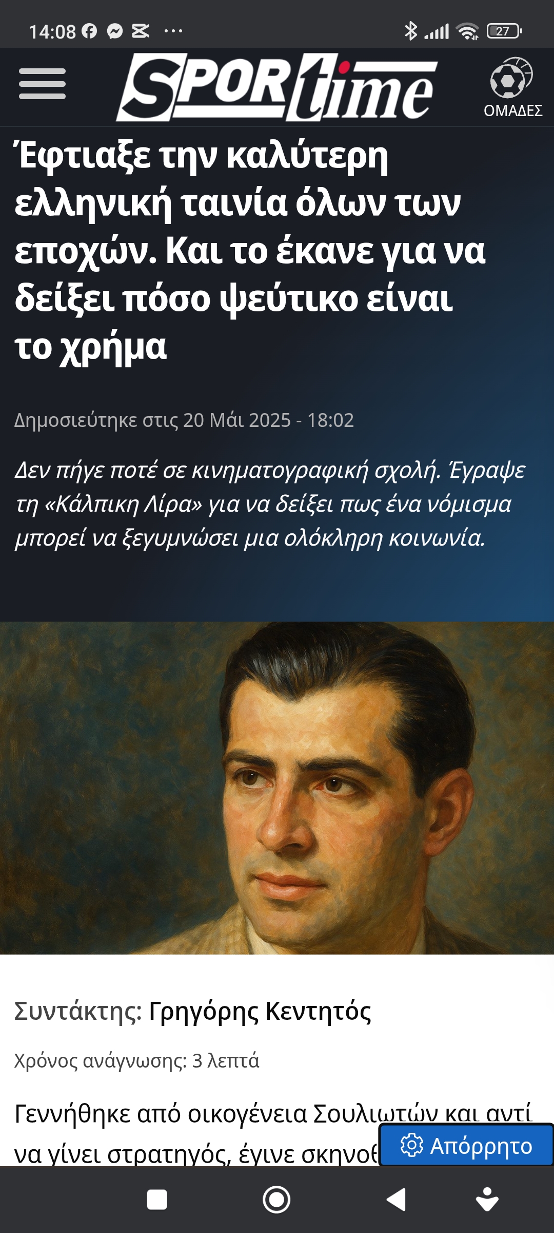 Εκπαίδευση / Πολιτισμός“Κάλπικη λίρα” η καλύτερη ταινία όλων των εποχών. Σκηνοθέτης Γιώργος Τζαβέλλας Πέτρος Ιωάννου11 μήνες ago11 μήνες ago01 mins 20/5/2025 https://www.sportime.gr/must-read/eftiaxe-tin-kaliteri-elliniki-tenia-olon-ton-epochon-ke-to-ekane-gia-na-dixi-poso-pseftiko-ine-to-chrima Πλοήγηση άρθρων Previous: Màrci Shore: Η Αμερική αντιμετωπίζει μια «δημοκρατική κατάσταση έκτακτης ανάγκης».Next: Σκίτσο του Γιώργου Καπράνου για το arcadiaportal.gr Αφήστε μια απάντηση Ακύρωση απάντησηςΗ ηλ. διεύθυνση σας δεν δημοσιεύεται. Τα υποχρεωτικά πεδία σημειώνονται με *Σχόλιο * Όνομα * Email * Ιστότοπος Αποθήκευσε το όνομά μου, email, και τον ιστότοπο μου σε αυτόν τον πλοηγό για την επόμενη φορά που θα σχολιάσω.