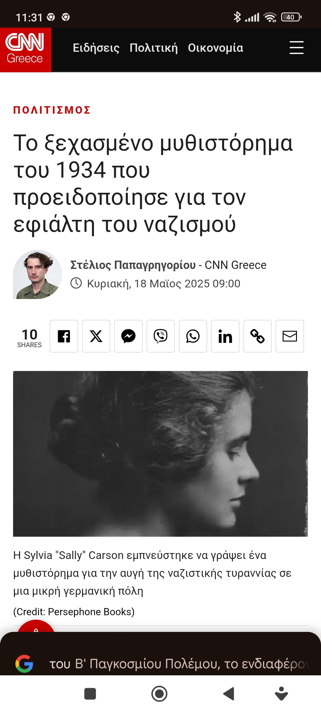 Eυρώπη / Διεθνή Εκπαίδευση / ΠολιτισμόςΤο ξεχασμένο μυθιστόρημα του ’34 που προειδοποιούσε για τον εφιάλτη του ναζισμού Πέτρος Ιωάννου11 μήνες ago11 μήνες ago01 mins 22/5/2025 https://www.cnn.gr/style/politismos/story/475695/to-ksexasmeno-mythistorima-tou-1934-pou-proeidopoiise-gia-ton-efialti-tou-nazismoy Πλοήγηση άρθρων Previous: Στο πόδι και η ΑθήναNext: Όλοι διαθέτουμε πλεονεκτήματα. Μένει και να τα αξιοποιήσουμε! Αφήστε μια απάντηση Ακύρωση απάντησηςΗ ηλ. διεύθυνση σας δεν δημοσιεύεται. Τα υποχρεωτικά πεδία σημειώνονται με *Σχόλιο * Όνομα * Email * Ιστότοπος Αποθήκευσε το όνομά μου, email, και τον ιστότοπο μου σε αυτόν τον πλοηγό για την επόμενη φορά που θα σχολιάσω.