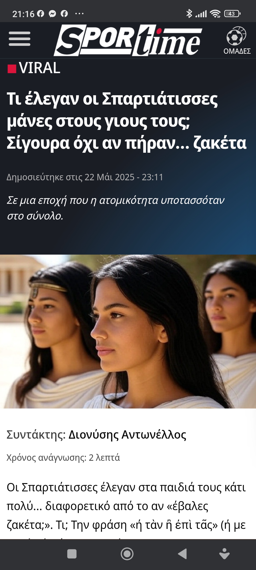 Ιστορία«ή τὰν ἢ ἐπὶ τᾶς» Πέτρος Ιωάννου11 μήνες ago11 μήνες ago01 mins 22/5/2025 https://www.sportime.gr/viral/ti-elegan-i-spartiatisses-manes-stous-gious-tis-sigoura-ochi-an-piran-zaketa Πλοήγηση άρθρων Previous: Τί τραβάνε και οι κατάσκοποι…Next: Β΄ Παγκόσμιος Πόλεμος & Εμφύλιος Πόλεμος Αφήστε μια απάντηση Ακύρωση απάντησηςΗ ηλ. διεύθυνση σας δεν δημοσιεύεται. Τα υποχρεωτικά πεδία σημειώνονται με *Σχόλιο * Όνομα * Email * Ιστότοπος Αποθήκευσε το όνομά μου, email, και τον ιστότοπο μου σε αυτόν τον πλοηγό για την επόμενη φορά που θα σχολιάσω.