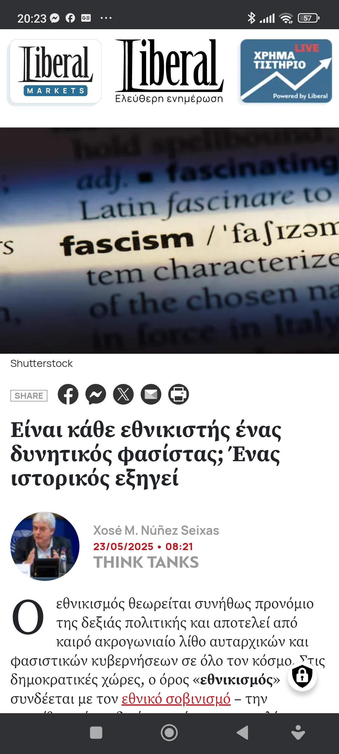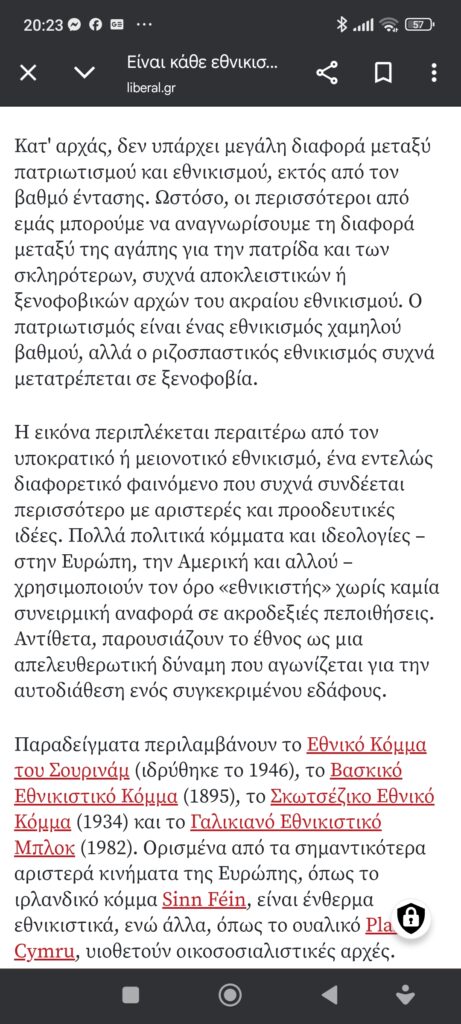 Κοινωνία / ΠολιτικήΕίναι κάθε εθνικιστής κι ένας δυνητικός φασίστας; Πέτρος Ιωάννου11 μήνες ago11 μήνες ago01 mins 23/5/2025 https://www.liberal.gr/think-tanks/einai-kathe-ethnikistis-enas-dynitikos-fasistas-enas-istorikos-exigei Πλοήγηση άρθρων Previous: Αβάσταχτος ο πόνοςNext: Απίστευτο κι όμως αληθινό Αφήστε μια απάντηση Ακύρωση απάντησηςΗ ηλ. διεύθυνση σας δεν δημοσιεύεται. Τα υποχρεωτικά πεδία σημειώνονται με *Σχόλιο * Όνομα * Email * Ιστότοπος Αποθήκευσε το όνομά μου, email, και τον ιστότοπο μου σε αυτόν τον πλοηγό για την επόμενη φορά που θα σχολιάσω.