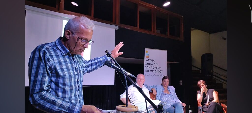 Η καθηγητές στο Πανεπιστήμιο Θεσσαλίας Ιωάννα Λαλιώτη, Χρήστος Γκόβαρης και Νικολός Βογιατζίδης παρουσίασαν πτυχές του εν λόγω βιβλίου με αναφορές και στην τρέχουσα πραγματικότητα. Ακολούθησε συζήτηση με το κοινό, στη φιλόξενη λογοτεχνική γωνιά.