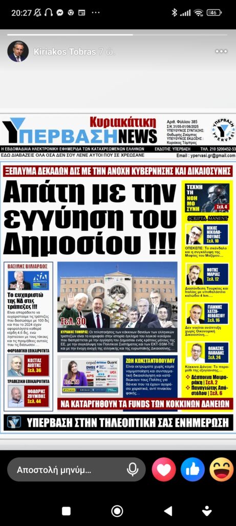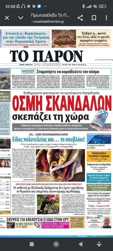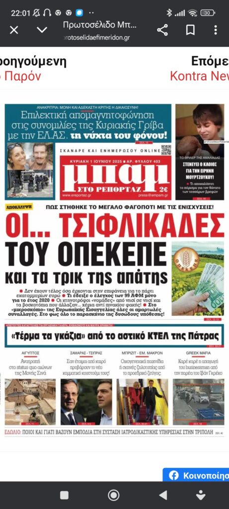 Ελλάδα / Κύπροςεφημερίδες εφημερίδες… Πέτρος Ιωάννου11 μήνες ago11 μήνες ago01 mins 1/6/2025 Πλοήγηση άρθρων Previous: Άγγ. Θεοδωράκης: Η σχέση με τον παππού δεν ήταν ιδιαίτερα θερμή, αλλά όταν κάθεται μπρος σου, κάθεσαι και τον ακούς. Μάθαμε τα πάντα για κείνον, απ’ τον ίδιο.Next: Απ’ το Κολοράντο στο Όρος Σινά Αφήστε μια απάντηση Ακύρωση απάντησηςΗ ηλ. διεύθυνση σας δεν δημοσιεύεται. Τα υποχρεωτικά πεδία σημειώνονται με *Σχόλιο * Όνομα * Email * Ιστότοπος Αποθήκευσε το όνομά μου, email, και τον ιστότοπο μου σε αυτόν τον πλοηγό για την επόμενη φορά που θα σχολιάσω.