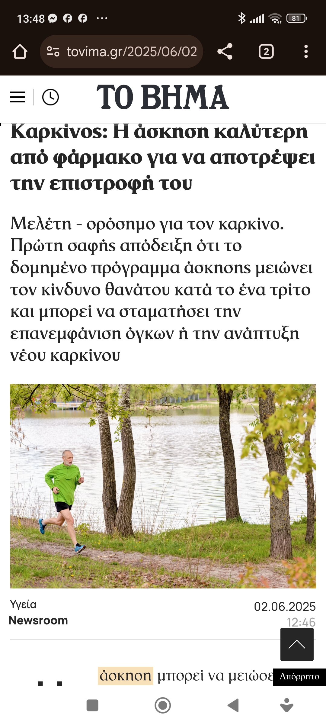 Η άσκηση πλεονεκτεί έναντι των φαρμάκων σε πρώην καρκινοπαθείς