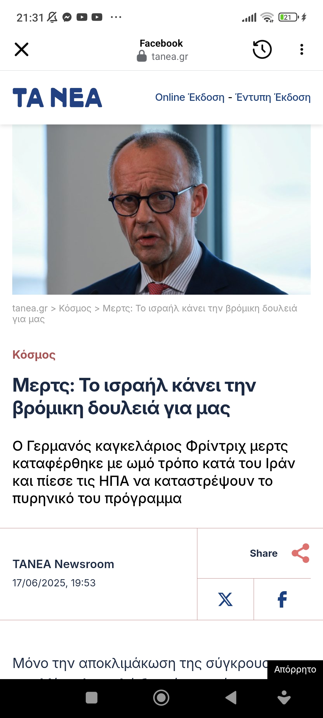 Eυρώπη / ΔιεθνήΜπα, οι δημοκρατίες κάνουν και βρώμικες δουλειές; Πέτρος Ιωάννου10 μήνες ago10 μήνες ago01 mins 17/6/2025 Μερτς: Το ισραήλ κάνει την βρόμικη δουλειά για μας Πλοήγηση άρθρων Previous: Αλήθεια το “επιλέγω” έναν και για 4-5 χρόνια , μπορεί να σκοτώνει όποτε θέλει, όποιους του καπνίσει, είναι δημοκρατία; Μου θυμίζει Αδόλφο αυτόNext: Μετά το Πανεπιστήμιο, στη γη και στο κοπάδι Αφήστε μια απάντηση Ακύρωση απάντησηςΗ ηλ. διεύθυνση σας δεν δημοσιεύεται. Τα υποχρεωτικά πεδία σημειώνονται με *Σχόλιο * Όνομα * Email * Ιστότοπος Αποθήκευσε το όνομά μου, email, και τον ιστότοπο μου σε αυτόν τον πλοηγό για την επόμενη φορά που θα σχολιάσω.