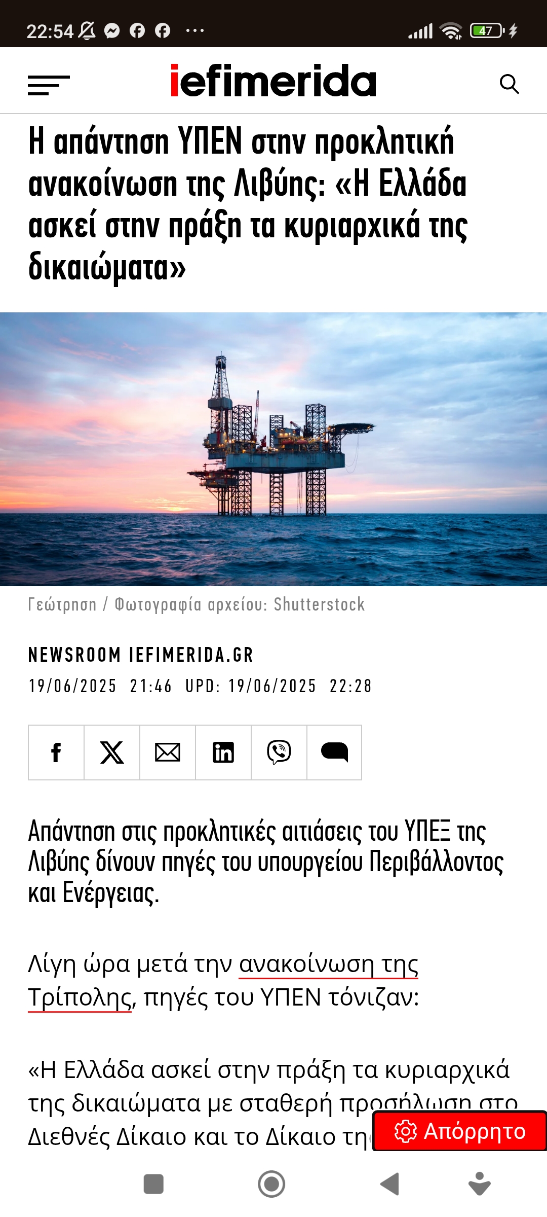 Eυρώπη / Διεθνή Ελλάδα / ΚύπροςΞανάρχισαν τα “όργανα”… Τρώμε χαστούκια πότε βόρεια, πότε ανατολικά, πότε νότια… Μετά την Αίγυπτο κ’ η Λιβύη… Πέτρος Ιωάννου10 μήνες ago10 μήνες ago01 mins 19/6/2025 https://www.iefimerida.gr/politiki/proklitiki-anakoinosi-libyis-apantisi-ypen Πλοήγηση άρθρων Previous: Η χρυσή ευκαιρία για τους Παλαιστίνιους χάθηκε το 2.000Next: 2 φευγάτοι ενώνουν την παραφροσύνη τους και “βιβλικά” εξοντώνουν λαούς (Π.Ι) Αφήστε μια απάντηση Ακύρωση απάντησηςΗ ηλ. διεύθυνση σας δεν δημοσιεύεται. Τα υποχρεωτικά πεδία σημειώνονται με *Σχόλιο * Όνομα * Email * Ιστότοπος Αποθήκευσε το όνομά μου, email, και τον ιστότοπο μου σε αυτόν τον πλοηγό για την επόμενη φορά που θα σχολιάσω.