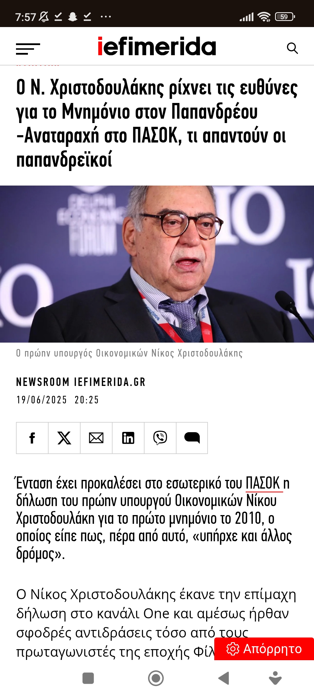 ΟικονομίαΥπήρχε κι άλλος δρόμος και το μαθαίνουμε, 15 χρόνια μετά, μετά το ξεπούλημα της Ελλάδας; (Π.Ι.) Πέτρος Ιωάννου10 μήνες ago10 μήνες ago01 mins 20/6/2025 https://www.iefimerida.gr/politiki/n-hristodoylakis-mnimonio-allos-dromos-lefta Πλοήγηση άρθρων Previous: Σκίτσο του Χρήστου Παπανίκου για το Ελλάδα 24Next: Μαύρο δάκρυ σε πορφυρί βελούδο Αφήστε μια απάντηση Ακύρωση απάντησηςΗ ηλ. διεύθυνση σας δεν δημοσιεύεται. Τα υποχρεωτικά πεδία σημειώνονται με *Σχόλιο * Όνομα * Email * Ιστότοπος Αποθήκευσε το όνομά μου, email, και τον ιστότοπο μου σε αυτόν τον πλοηγό για την επόμενη φορά που θα σχολιάσω.
