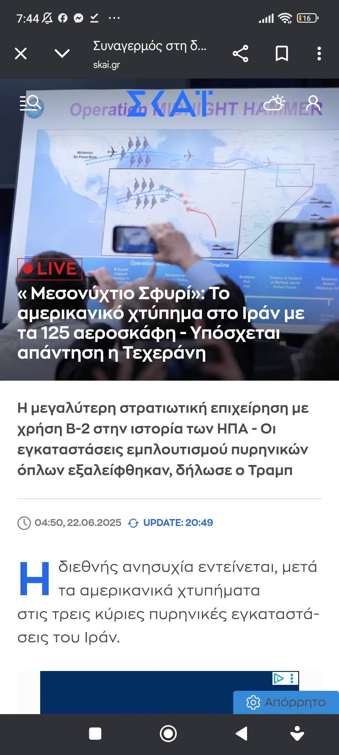 Eυρώπη / ΔιεθνήΜπαίνουμε σε νέα εποχή; Ο σερίφης χτύπησε το Ιράν Πέτρος Ιωάννου10 μήνες ago10 μήνες ago01 mins 22/6/2025 https://www.skai.gr/news/world/oi-ipa-vomvardisan-to-iran Πλοήγηση άρθρων Previous: Ολοκληρώθηκε το ΚΥΣΕΑ…Next: Φταίει ο κάθε σερίφης ή οι ψηφοφόροι; Αφήστε μια απάντηση Ακύρωση απάντησηςΗ ηλ. διεύθυνση σας δεν δημοσιεύεται. Τα υποχρεωτικά πεδία σημειώνονται με *Σχόλιο * Όνομα * Email * Ιστότοπος Αποθήκευσε το όνομά μου, email, και τον ιστότοπο μου σε αυτόν τον πλοηγό για την επόμενη φορά που θα σχολιάσω.