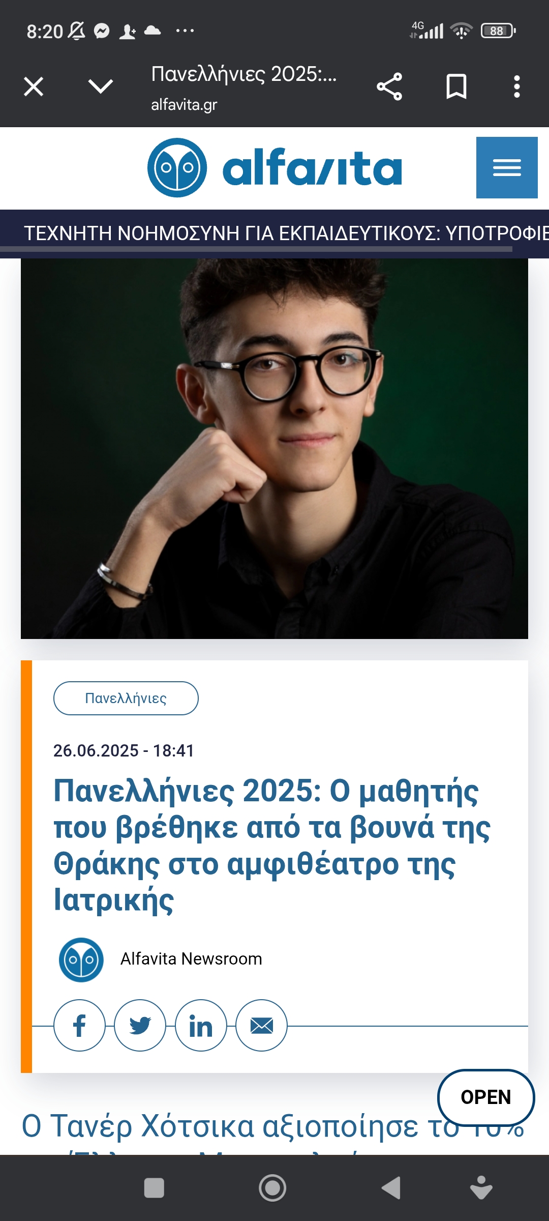 Εκπαίδευση / ΠολιτισμόςΑπ’ τα βουνά της Θράκης στην Ιατρική σχολή Πέτρος Ιωάννου9 μήνες ago9 μήνες ago01 mins 26/6/2025 https://www.alfavita.gr/panellinies/482192_panellinies-2025-o-mathitis-poy-brethike-apo-ta-boyna-tis-thrakis-sto#goog_rewarded Πλοήγηση άρθρων Previous: Ερμηνείες… Νάχουμε να λέμεNext: Μανώλης Κοτάκης: Κατασκευάζεται νέος λαός, λαός κυνικός Αφήστε μια απάντηση Ακύρωση απάντησηςΗ ηλ. διεύθυνση σας δεν δημοσιεύεται. Τα υποχρεωτικά πεδία σημειώνονται με *Σχόλιο * Όνομα * Email * Ιστότοπος Αποθήκευσε το όνομά μου, email, και τον ιστότοπο μου σε αυτόν τον πλοηγό για την επόμενη φορά που θα σχολιάσω.
