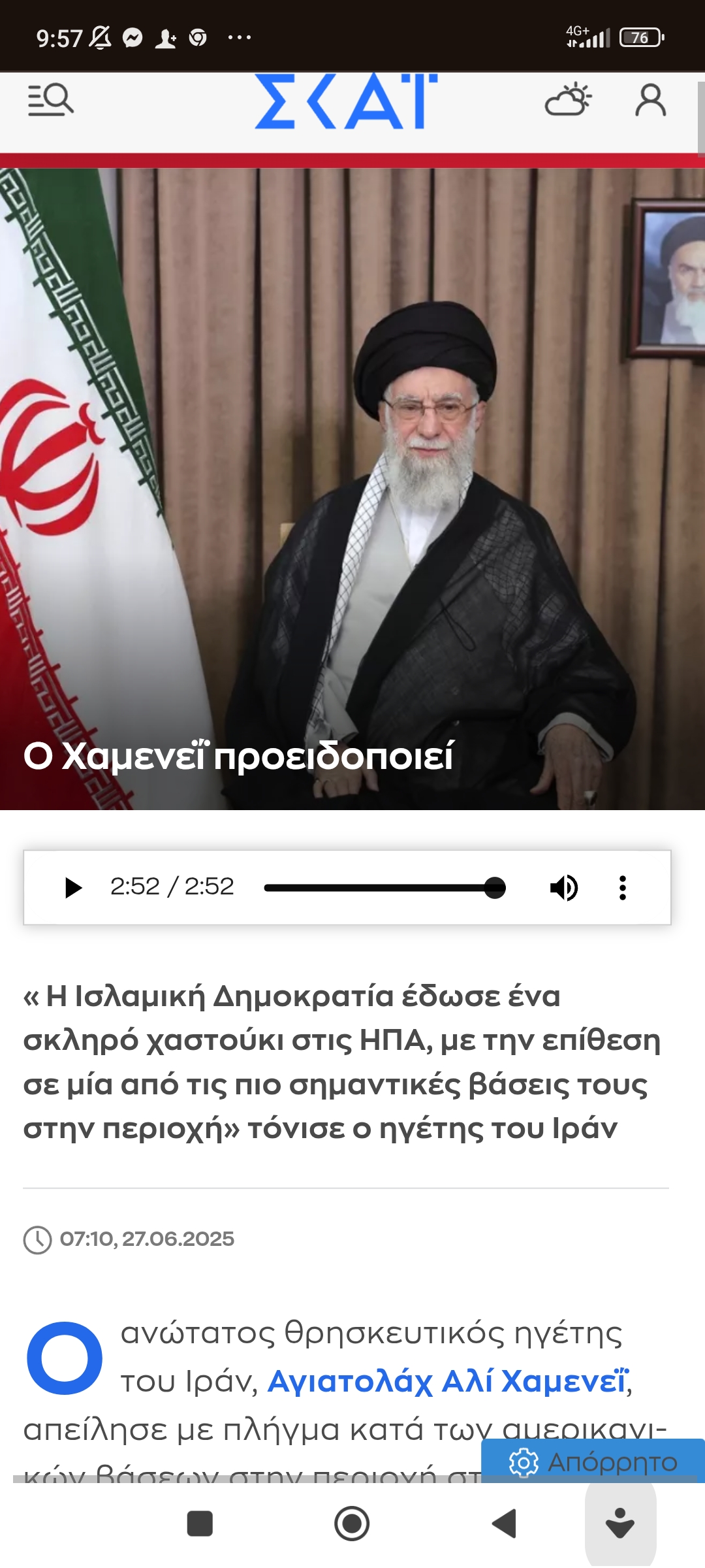 Eυρώπη / ΔιεθνήΌταν βγει ο Χαμενεΐ απ’ τα λαγούμια ποιό Ιράν θα βρει; 600 οι νεκροί και δισεκατομμύρια οι ζημιές Πέτρος Ιωάννου9 μήνες ago9 μήνες ago01 mins ΣΚΑΪ 27/6/2025 https://www.skai.gr/news/world/o-xamenei-proeidopoiei Πλοήγηση άρθρων Previous: Μανώλης Κοτάκης: Κατασκευάζεται νέος λαός, λαός κυνικόςNext: Οι βρώμικες δουλειές, βρώμικα αντιμετωπίζονται Αφήστε μια απάντηση Ακύρωση απάντησηςΗ ηλ. διεύθυνση σας δεν δημοσιεύεται. Τα υποχρεωτικά πεδία σημειώνονται με *Σχόλιο * Όνομα * Email * Ιστότοπος Αποθήκευσε το όνομά μου, email, και τον ιστότοπο μου σε αυτόν τον πλοηγό για την επόμενη φορά που θα σχολιάσω.