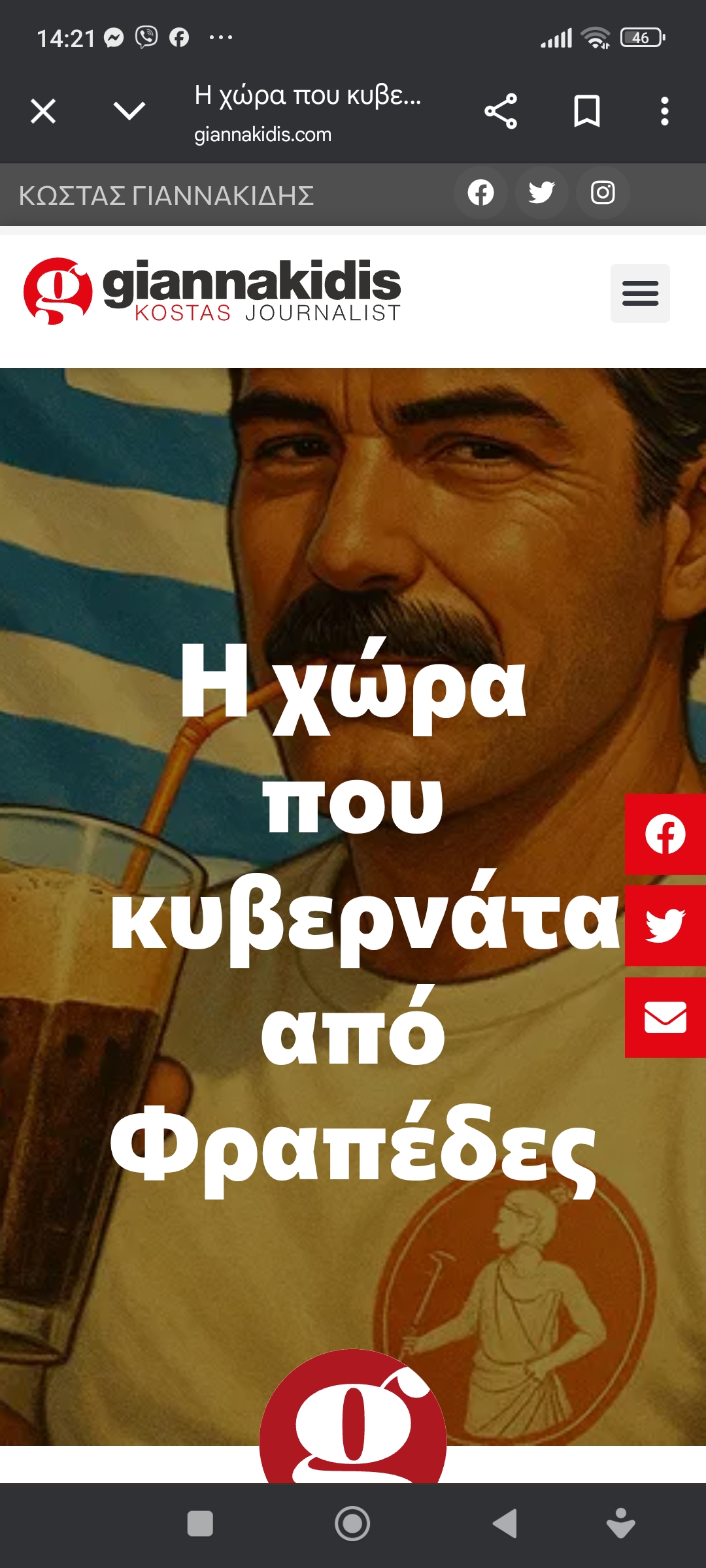 ΑπόψειςΗ χώρα κυβερνάται από φραπέδες Πέτρος Ιωάννου10 μήνες ago10 μήνες ago01 mins 4/7/2025 H χώρα που κυβερνάται από Φραπέδες Πλοήγηση άρθρων Previous: Πέτρος Κατσάκος: Δεν μας κυβερνούν οι φραπέδεςNext: Αρχαίο θέατρο Λάρισας. Ταξίδι στο χρόνο. Σύνθεση Λάζαρος Αναστασιάδης Αφήστε μια απάντηση Ακύρωση απάντησηςΗ ηλ. διεύθυνση σας δεν δημοσιεύεται. Τα υποχρεωτικά πεδία σημειώνονται με *Σχόλιο * Όνομα * Email * Ιστότοπος Αποθήκευσε το όνομά μου, email, και τον ιστότοπο μου σε αυτόν τον πλοηγό για την επόμενη φορά που θα σχολιάσω.