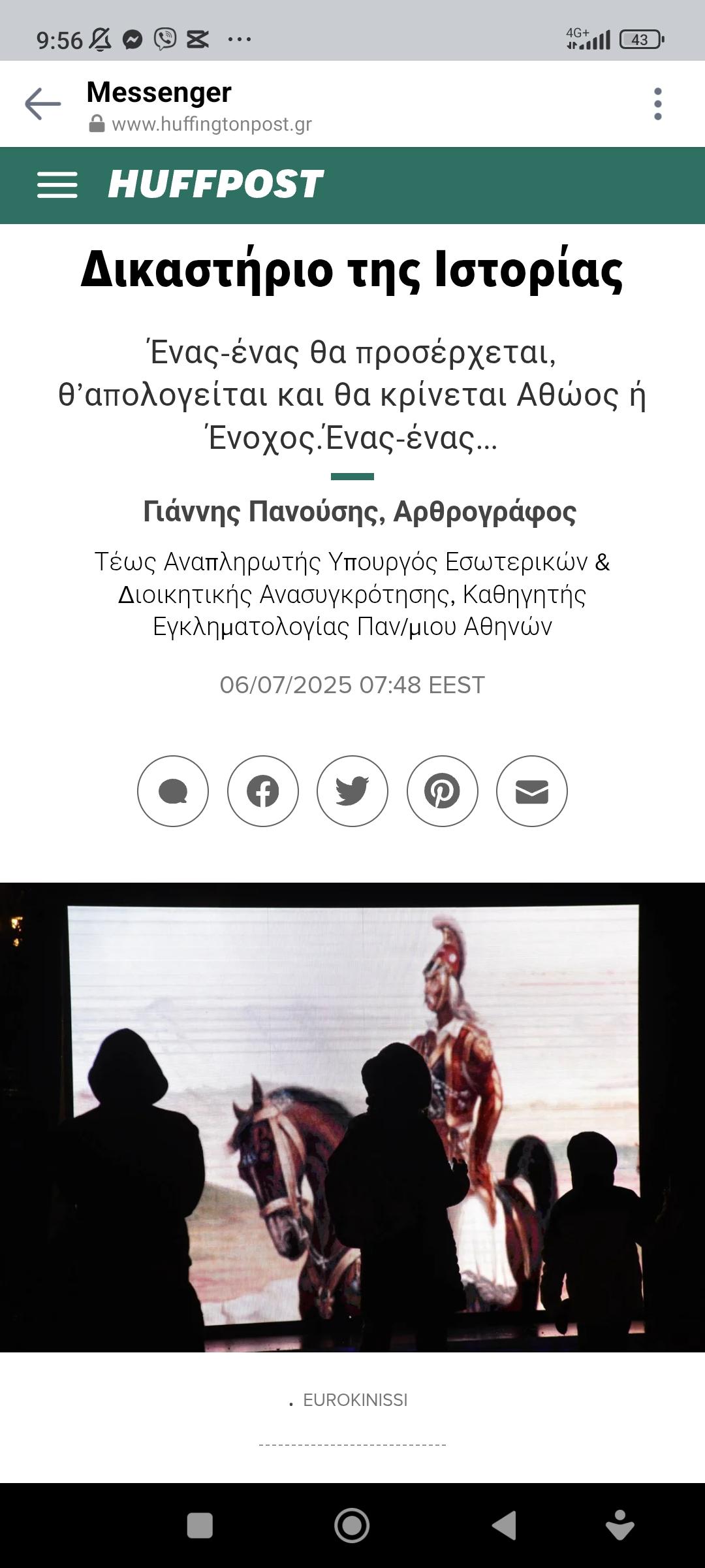 Απόψεις Κοινωνία / ΠολιτικήΈνας ένας απ’ το δικαστήριο της Ιστορίας Πέτρος Ιωάννου9 μήνες ago9 μήνες ago01 mins 6/7/2025 https://www.huffingtonpost.gr/entry/dikasterio-tes-istorias_gr_68690f2ce4b08e646a17456c Πλοήγηση άρθρων Previous: Στο απόγειο το γαλάζιο ρουσφέτιNext: Επαμεινώνδας, Λεύκτρα και Έλον Μάσκ Αφήστε μια απάντηση Ακύρωση απάντησηςΗ ηλ. διεύθυνση σας δεν δημοσιεύεται. Τα υποχρεωτικά πεδία σημειώνονται με *Σχόλιο * Όνομα * Email * Ιστότοπος Αποθήκευσε το όνομά μου, email, και τον ιστότοπο μου σε αυτόν τον πλοηγό για την επόμενη φορά που θα σχολιάσω.