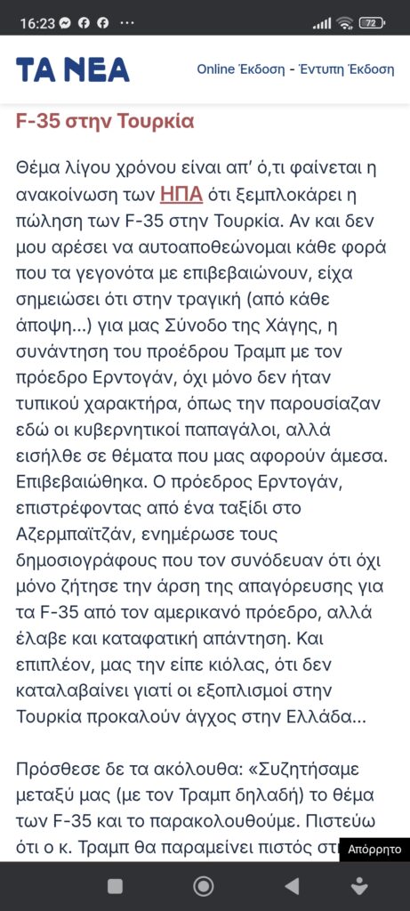 ...ξανά στα θρανία, στη μεγάλη των γελοιογράφων σχολήΤράμπ, Ερντογάν τα είπαν. Αργά ή γρήγορα θα ξεπαγώσουν τα f-35 για Τουρκία Πέτρος Ιωάννου10 μήνες ago10 μήνες ago01 mins Σκίτσο της Έφης Ξένου για τα ΝΕΑ ΤΑ ΝΕΑ Στίγμα 7/7/2025 Γιώργος Παπαχρήστος Μεγαλοοφειλέτες… Πλοήγηση άρθρων Previous: Όταν οι επαγγελματίες είναι επαγγελματίες!!!Next: Η καλημέρα του Αρκά Αφήστε μια απάντηση Ακύρωση απάντησηςΗ ηλ. διεύθυνση σας δεν δημοσιεύεται. Τα υποχρεωτικά πεδία σημειώνονται με *Σχόλιο * Όνομα * Email * Ιστότοπος Αποθήκευσε το όνομά μου, email, και τον ιστότοπο μου σε αυτόν τον πλοηγό για την επόμενη φορά που θα σχολιάσω.