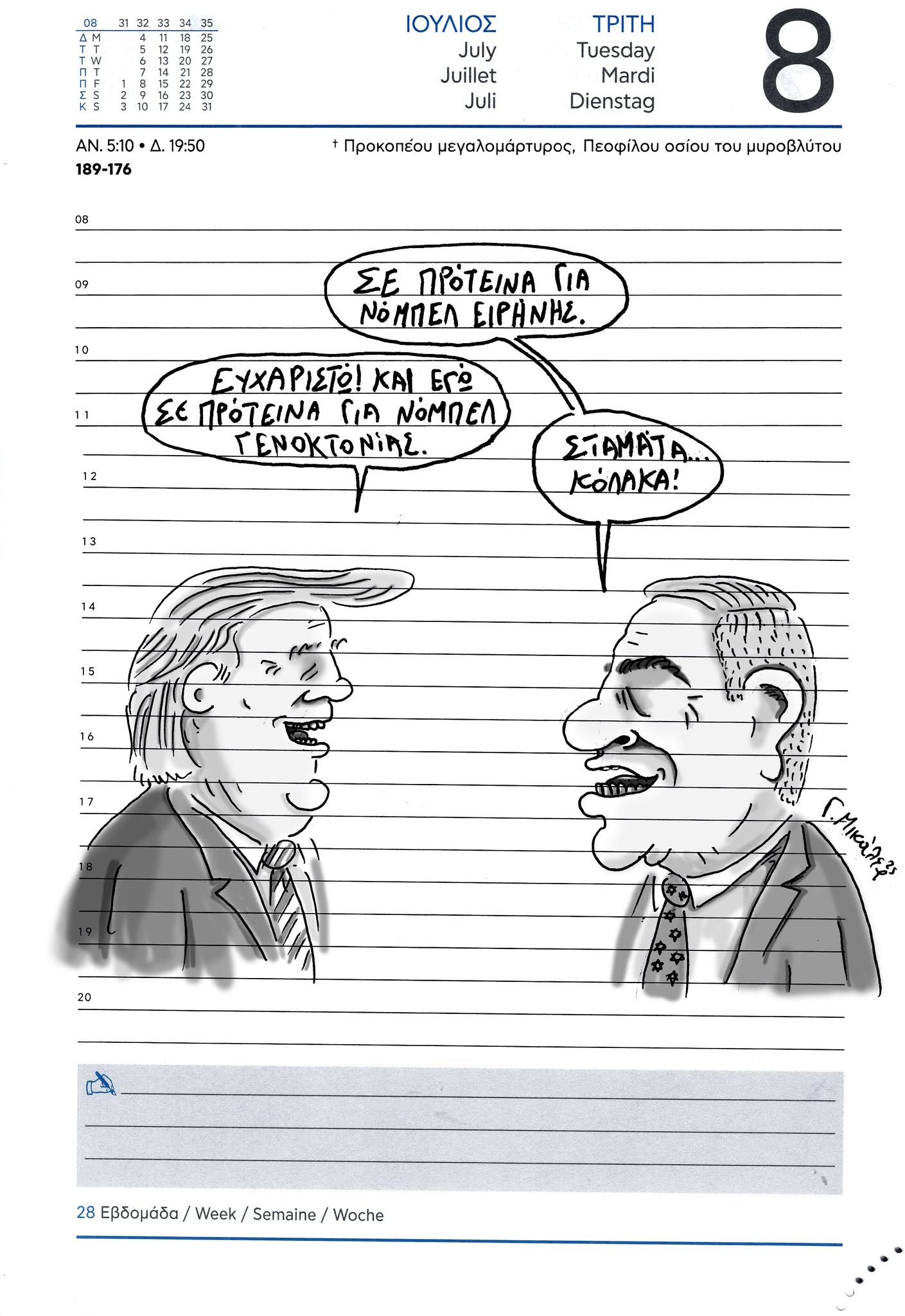 ...ξανά στα θρανία, στη μεγάλη των γελοιογράφων σχολήΣκίτσο του Γιώργου Μικάλεφ για το ThePressProject Πέτρος Ιωάννου9 μήνες ago9 μήνες ago01 mins 8/7/2025 https://thepressproject.gr/author/giorgos-mikalef Πλοήγηση άρθρων Previous: “Νοείται αριστερά του τίποτα”;Next: Δεν μας δροσίζει μόνον το καρπούζι Αφήστε μια απάντηση Ακύρωση απάντησηςΗ ηλ. διεύθυνση σας δεν δημοσιεύεται. Τα υποχρεωτικά πεδία σημειώνονται με *Σχόλιο * Όνομα * Email * Ιστότοπος Αποθήκευσε το όνομά μου, email, και τον ιστότοπο μου σε αυτόν τον πλοηγό για την επόμενη φορά που θα σχολιάσω.