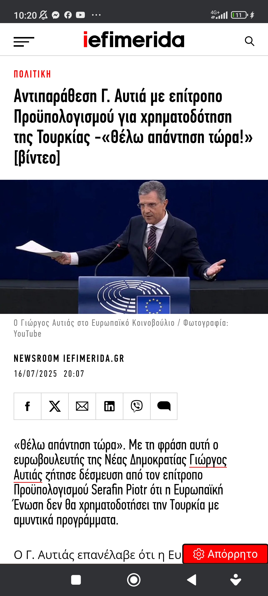 Eυρώπη / Διεθνή Άμυνα / ΣτρατηγικήΑιχμές Αυτιά προς επίτροπο για κονδύλια προς Τουρκία Πέτρος Ιωάννου9 μήνες ago9 μήνες ago01 mins 18/7/2025 https://www.iefimerida.gr/politiki/antiparathesi-aytia-me-epitropo-proypologismoy-gia-toyrkiahttps://www.iefimerida.gr/politiki/antiparathesi-aytia-me-epitropo-proypologismoy-gia-toyrkia Πλοήγηση άρθρων Previous: Η καλημέρα του ΑρκάNext: Σκίτσο του Ηλία Μακρή για την Καθημερινή Αφήστε μια απάντηση Ακύρωση απάντησηςΗ ηλ. διεύθυνση σας δεν δημοσιεύεται. Τα υποχρεωτικά πεδία σημειώνονται με *Σχόλιο * Όνομα * Email * Ιστότοπος Αποθήκευσε το όνομά μου, email, και τον ιστότοπο μου σε αυτόν τον πλοηγό για την επόμενη φορά που θα σχολιάσω.