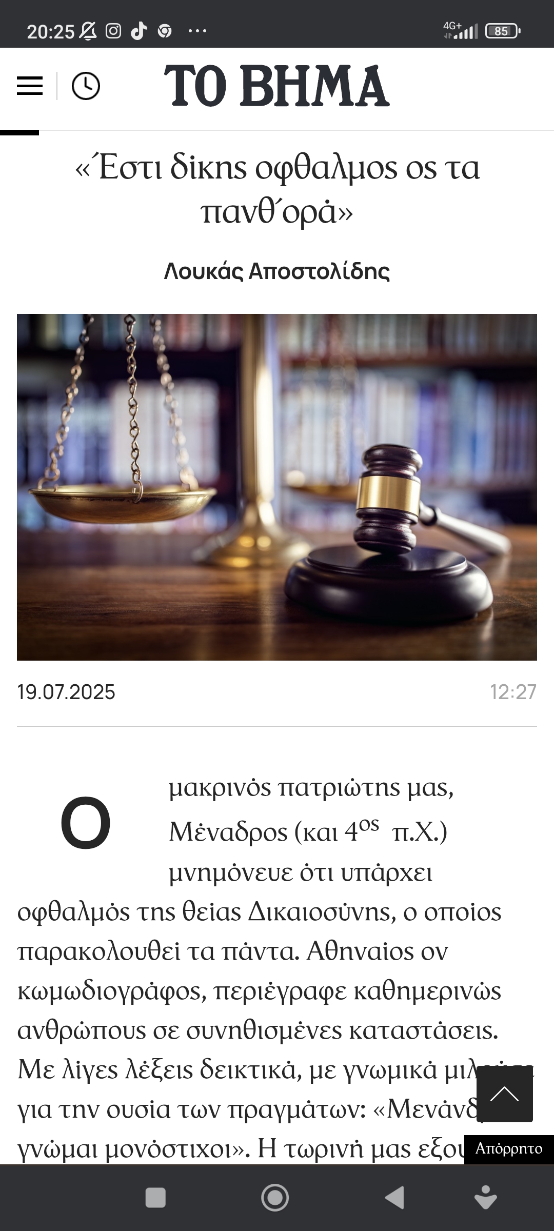 Έγκλημα και τιμωρίαΈστι δίκης οφθαλμός ός τα πάνθ’ ορά Πέτρος Ιωάννου9 μήνες ago9 μήνες ago01 mins 20/7/2025 «Έστι δίκης οφθαλμος ος τα πανθ΄ορά» Πλοήγηση άρθρων Previous: Εάν ένα παιδί σε δει να κλαίςNext: Μια καλημέρα απ’ τον ΚΥΡ Αφήστε μια απάντηση Ακύρωση απάντησηςΗ ηλ. διεύθυνση σας δεν δημοσιεύεται. Τα υποχρεωτικά πεδία σημειώνονται με *Σχόλιο * Όνομα * Email * Ιστότοπος Αποθήκευσε το όνομά μου, email, και τον ιστότοπο μου σε αυτόν τον πλοηγό για την επόμενη φορά που θα σχολιάσω.