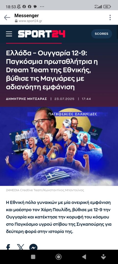 ΑθλητισμόςΠαγκόσμιες στο πόλο οι γυναίκες Πέτρος Ιωάννου9 μήνες ago9 μήνες ago01 mins 23/7/2025 https://www.sport24.gr/polo/ellada-oungaria-12-9-pagkosmia-protathlitria-i-dream-team-tis-ethnikis-vithise-tis-magiares-me-adianoiti-emfanisi/?utm_source=facebook&utm_medium=facebook-messenger&utm_campaign=cleverpush&cleverPushFacebookClick=true Πλοήγηση άρθρων Previous: Η σημαντικότερη είδηση της 10ετίας πέρασε στα ψιλάNext: Μια καλημέρα απ’ τον ΚΥΡ Αφήστε μια απάντηση Ακύρωση απάντησηςΗ ηλ. διεύθυνση σας δεν δημοσιεύεται. Τα υποχρεωτικά πεδία σημειώνονται με *Σχόλιο * Όνομα * Email * Ιστότοπος Αποθήκευσε το όνομά μου, email, και τον ιστότοπο μου σε αυτόν τον πλοηγό για την επόμενη φορά που θα σχολιάσω.