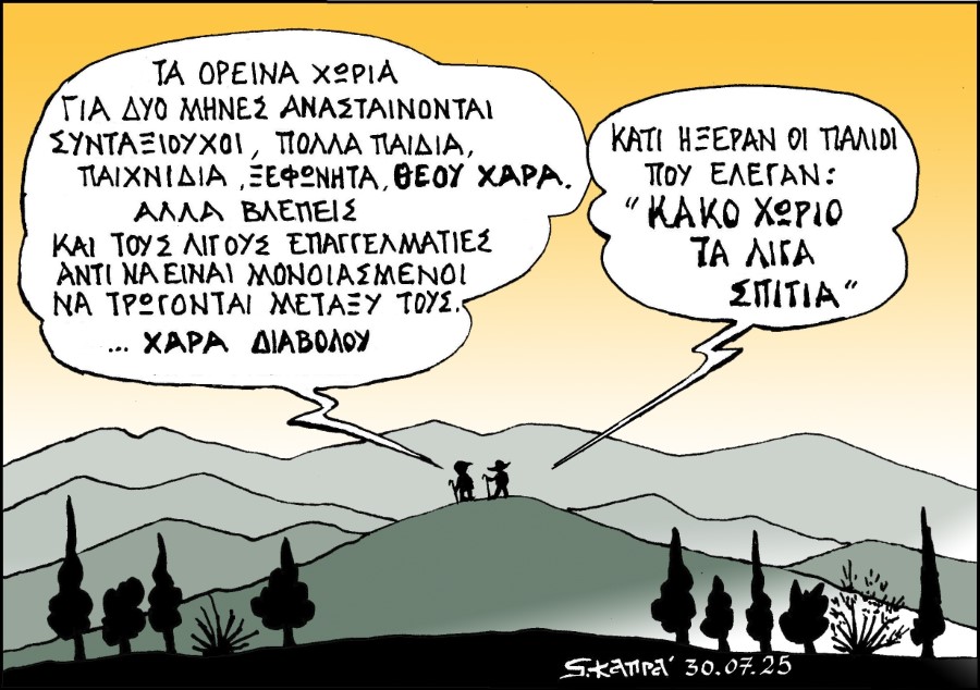 ...ξανά στα θρανία, στη μεγάλη των γελοιογράφων σχολήΚακό χωριό τα λίγα σπίτια Πέτρος Ιωάννου9 μήνες ago9 μήνες ago01 mins Σκίτσο του Γιώργου Καπράνου για το arcadiaportal.gr 30/7/2025 Πλοήγηση άρθρων Previous: ΣΤο δίλημμα…Next: Σκίτσο του Κώστα Μητρόπουλου για τα ΝΕΑ Αφήστε μια απάντηση Ακύρωση απάντησηςΗ ηλ. διεύθυνση σας δεν δημοσιεύεται. Τα υποχρεωτικά πεδία σημειώνονται με *Σχόλιο * Όνομα * Email * Ιστότοπος Αποθήκευσε το όνομά μου, email, και τον ιστότοπο μου σε αυτόν τον πλοηγό για την επόμενη φορά που θα σχολιάσω.