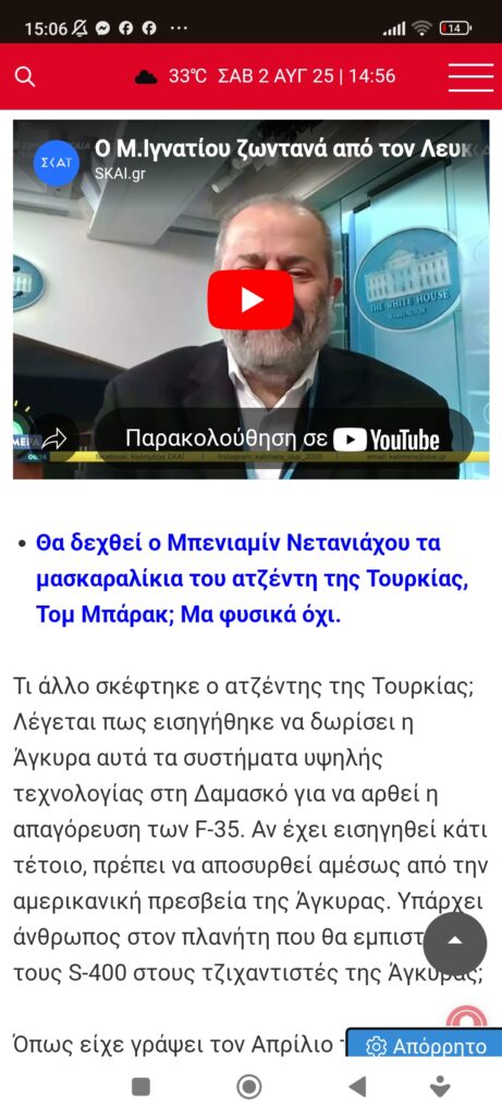 Eυρώπη / ΔιεθνήΌλα του γάμου δύσκολα (F-35). Δύσκολα και τα τρικ με τους S-400 προς Συρία Πέτρος Ιωάννου9 μήνες ago9 μήνες ago01 mins 2/8/2025 ΚΟΚΚΙΝΗ ΓΡΑΜΜΗ: Τα παραμύθια της …Χαλιμάς για το ρωσικό σύστημα S-400 και ο επικίνδυνος ατζέντης της Τουρκίας… Αν είναι δυνατόν… Το ΠΑΣΟΚ χρωστά πάνω από 507 εκ. ευρώ!!! (video) Πλοήγηση άρθρων Previous: …ή αυτοί ή εμείςNext: Η φρίκη, έχει ονοματεπώνυμο Αφήστε μια απάντηση Ακύρωση απάντησηςΗ ηλ. διεύθυνση σας δεν δημοσιεύεται. Τα υποχρεωτικά πεδία σημειώνονται με *Σχόλιο * Όνομα * Email * Ιστότοπος Αποθήκευσε το όνομά μου, email, και τον ιστότοπο μου σε αυτόν τον πλοηγό για την επόμενη φορά που θα σχολιάσω.